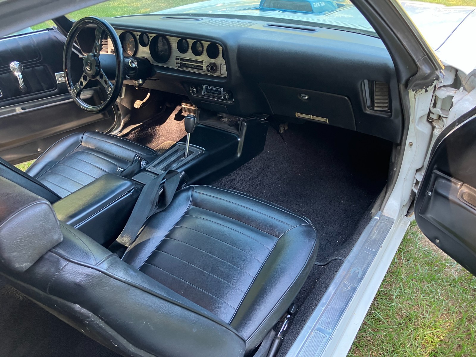 1970 firebird, has a 1970 400 code WT-9799914 block bored 60 over with about 2000 miles since rebuild. Has 1-3 heads, ram air exhaust manifolds rebuilt carb and rebuilt fuel pump with newer exhaust system. The transmission is a turbo 400 with shift kit and the rear end is a 12 bolt COS code 3.31 posi. I just replaced the solenoids in the oem functioning hood scoop and works good. The car was restored about 15 years ago and all the bushing, ball joints, front springs, shocks, body bushings, radiator, condenser, blower motor, heater core, were replaced. The body and paint was also done at that time. It still looks good but does have flaws, cracks in Endura bumper, a few runs, dust nib's, chips, dings, etc. It has a quick ratio steering box, 1.25 front sway bar,.812 rear sway bar. The tires look good but are over 12 years old. The whole brake system was replaced recently. The car runs, drives, handles, stops and sound great. The interior looks good, all gauges work except the clock. All directionals, running lights, brake lights, back up and head lights work. I never finished hooking up the a/c but all the brackets, condenser and wiring harness is there but still needs a drier, compressor and a couple of hoses to finish also the horn doesn't work.