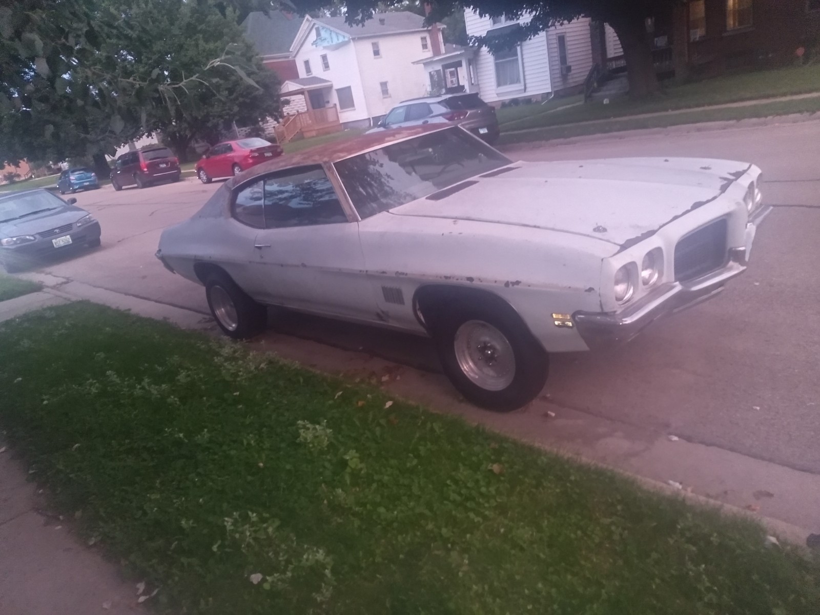 1971 Pontiac Lemans project car. New gas tank. Fuel pump. Fuel lines.New brake system(OPGI)New steering system (OPGI)Rebuilt rear end6 new tires (2 in trunk) new wheel studs Wheel alignment doneAll professionally done Not picturedNew in box bucket seats and brackets . (Jegs)Rear Deck lid (Brown) (OPGI)Also I will email winner the Pontiac Historical Society documentation on this car. No engine or trans. Needs body work.. but could run and drive with an engine and trans. I am setting the price to get close to what I have into what I have into it. I know it's rough. But I hope it goes to a good home