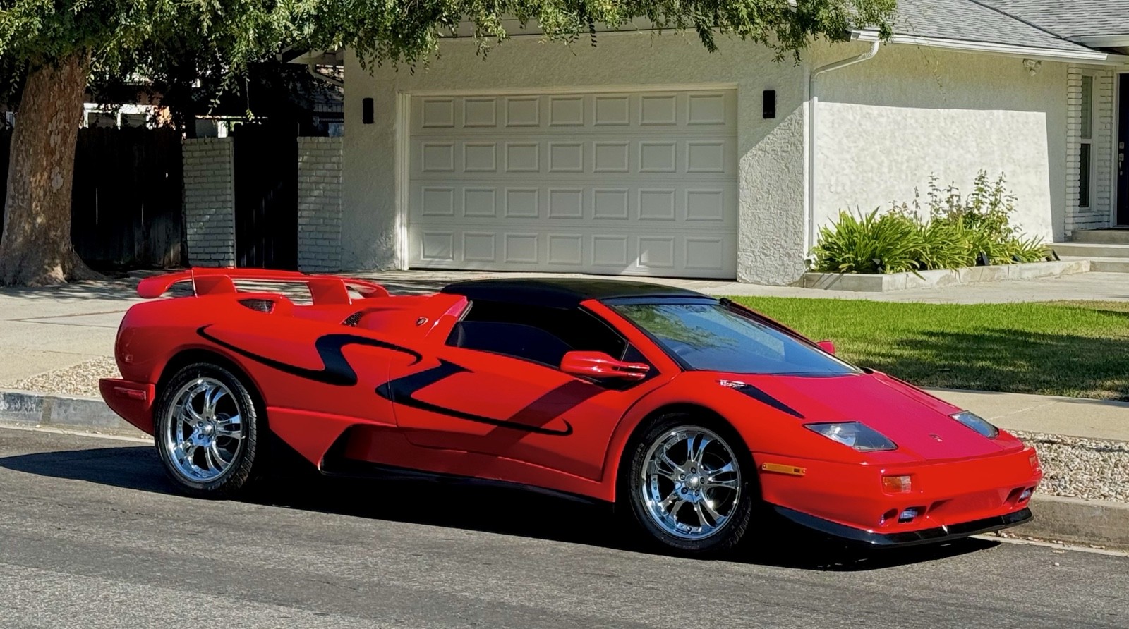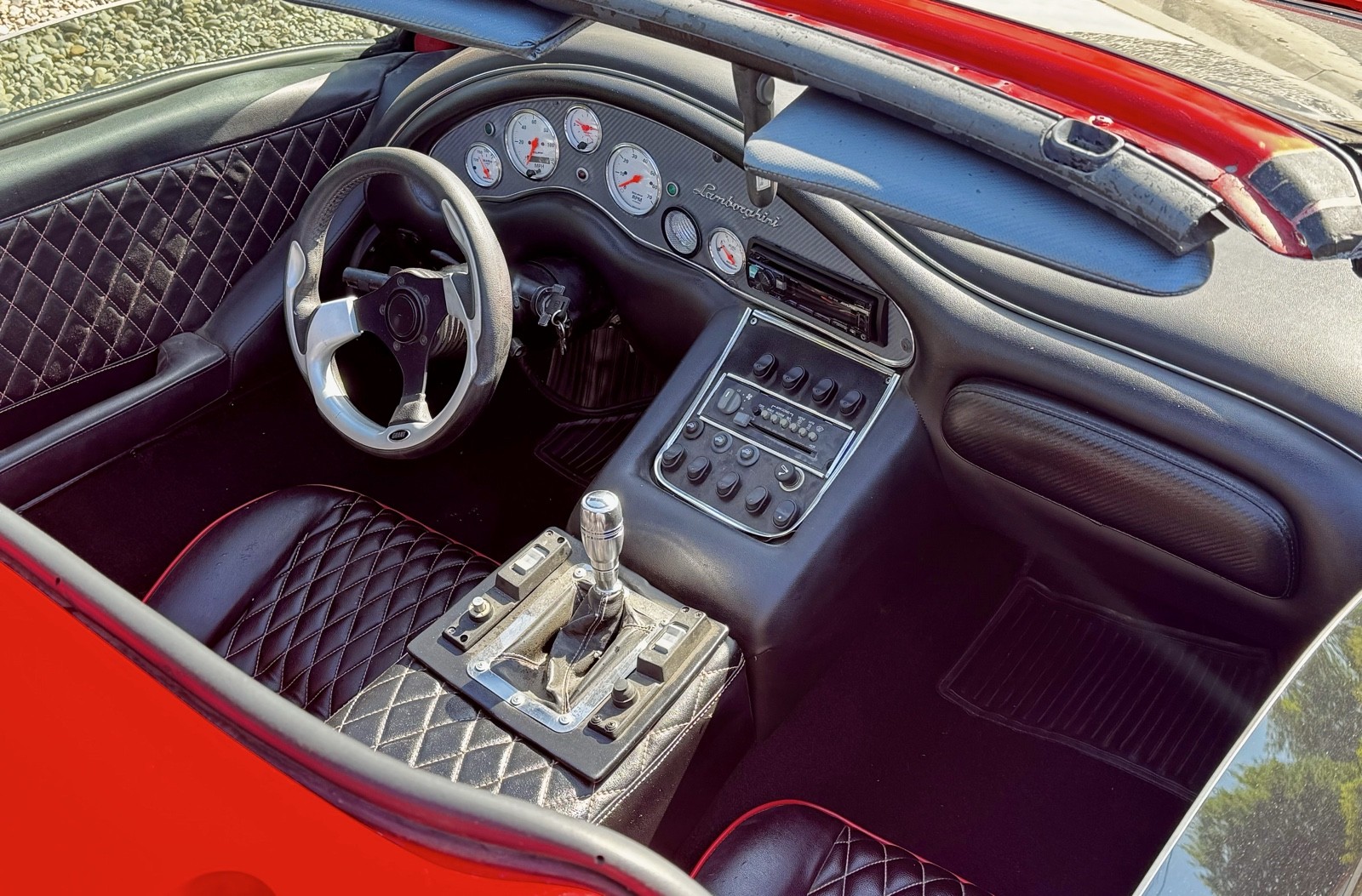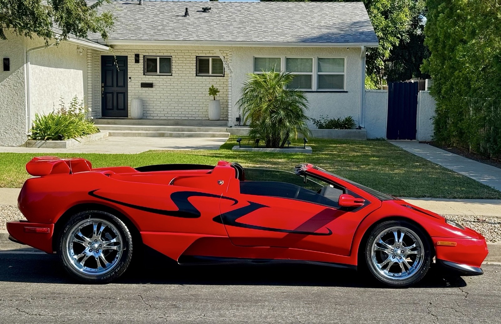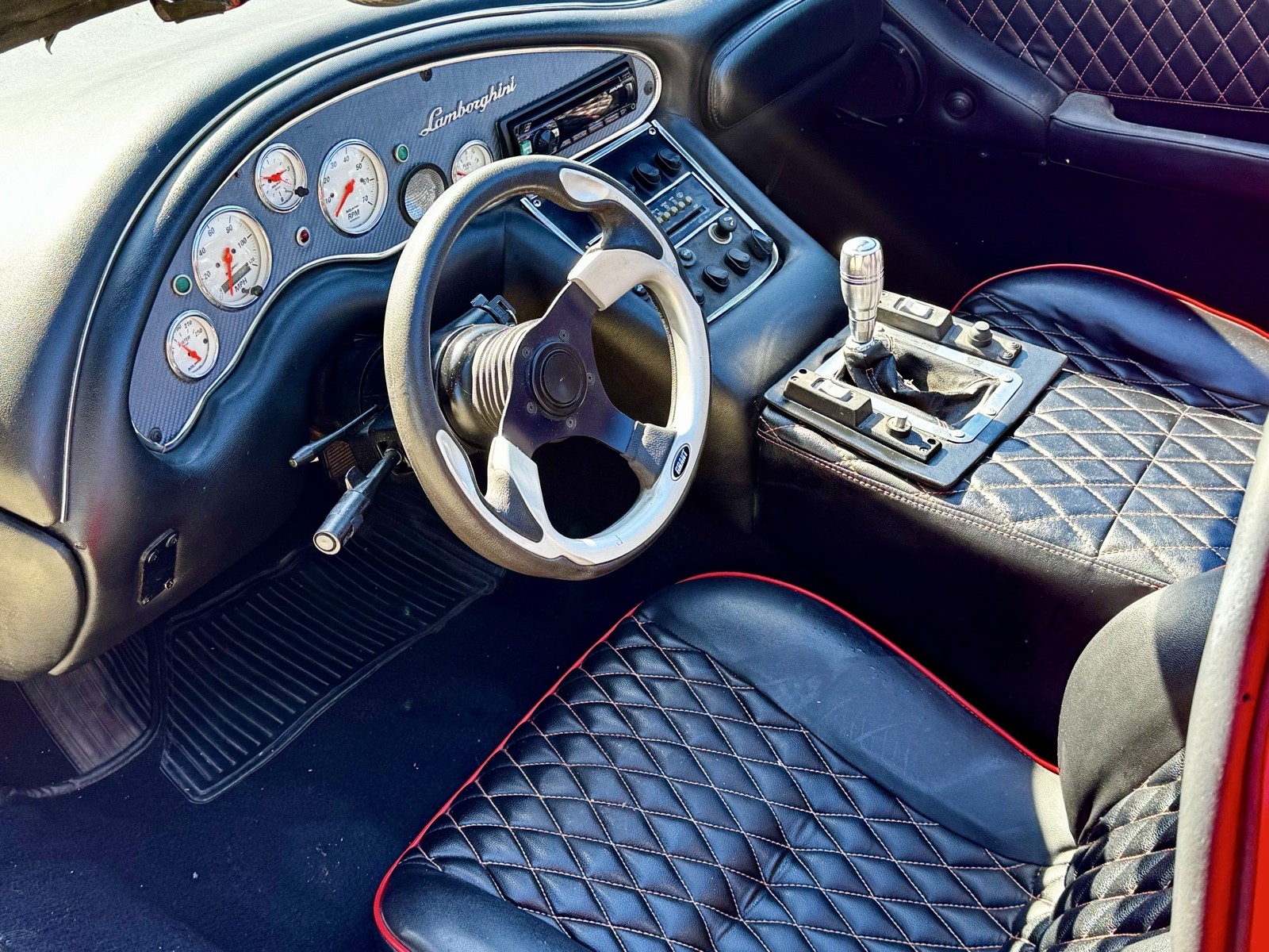 This is a replica of a 1992 Lamborghini Diablo Roadster. Vehicle Details Here it is a turn key, Lamborghini Diablo roadster replica . Does not need Anything, It is ready to drive. The build was finished over five years ago power windows, power locks, Alpine stereo system. All the lights work extra large radiator and cooling fans does not overheat. It has an automatic transmission that functions perfectly no issues at all and the best part is the engine V6 supercharged 3800 motor with upgraded coils, spark, plug wires, supercharger pulley, air filter, and new battery. Also has stainless steel exhaust system. Tires are 85%. The hardtop is removable. The body is exact dimensions of the real car. The length and width are the same. The Seats and door panels were custom-made for the car black with red diamond stitching. I have no problem having someone test drive the car before they bid there is no hidden issues with it. Driving down the street the brakes function, the engine and transmission operate perfectly. |