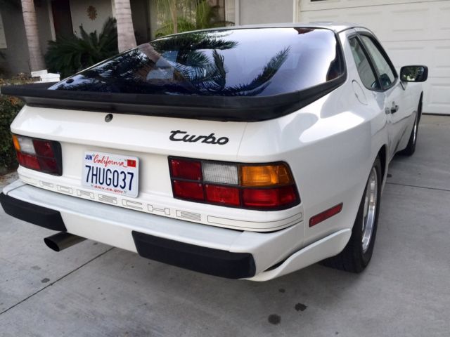Beautiful and clean 1986 Model 944 (951) Turbo coupe. "NO RESERVE"... I'm the second owner of record but there was a dealer in between me and theoriginal ownerthat titled it in his carcompany's name but as for driver/owners, here were only two. Car is originally from Oregon and then came to me in Southern California. It's 100% rust free and has a very straight body with normal small dings from a car this age but nothing that makes it unsightly. Interior is a 9.5 with no rips or tears as seen in the photos. Dash has a crack but not unsightly and can be repaired with the aftermarket form fitting cover. All the glass is great without any chips or cracks. Rubber gaskets around the windows also very good condition. Headlights go up and down without a flaw.Also has a new tailpipe section with new OEM hangers. Original owners manual included. It has been repainted on the left rear quarter but no "Bondo" or heavy repair. Sunroof works as expected...Photos say it all... All Original.... Completely stock.. Tires are almost new Toyo Proxes TPT Front 205/55/16, ear 225/55/16, ounted on stock Porsche Fuchs wheels with no curb rash. Brakes are 75% or better, otors good. Very fast car that glides down the road. Clutch and shifting is also nice and smooth...what you'd expect from a well taken cared of Porsche. Many out there have 5+ owners, ome race cars drivers... This car is just nice..... I was picky when I searched for one and this was the one I selected... Car is being sold as is without warranty. It's bone stock and runs very good.... You won't be disappointed. California registration paid up until June 2016. Recentlysmog certifiedas well.... Email me for more info Woonsocketlobster@Gmail.com or call/ text me at 714-296-2474. I'm on PST, o you back east people be kind... You can call as early as 10am your time. Car is located in Anaheim, A. Note: The only connection I have with a transport company if my friend Nick that has a beautiful Volvo car carrier rig that goes from So Cal to Houston Texas every other week (three trips a month minimum). Car can be transported for $500 anyway along the Hwy 10 going from So Cal to Houston and destinations along the way. Other than that, recommend DAS transport services. They have the best rates, specially if you pick the car up at one of their terminals nearest you. |