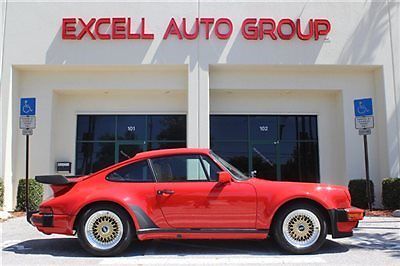 1986 PORSCHE 911 TURBO COUPE Introducing the 1986 Porsche 911 Turbo Coupe with a 4 Speed Manual transmission. Have you been dreaming of owning a classic Porsche Turbo but did not want to get haggled at a dealership or pay the new car price.Here is your chance to own this 911 at a huge discount to a new one and without the stress! This Porsche is the true definition of power, gility, recision, nd style.Options on this air cooled Porscheinclude: 16" BBS Mesh Factory Wheels with Gold Finish, ross Drilled Brake Rotors, actory "Whale Tail", lack Exhaust Tips, unroof, ower Leather Seats, Turbo" Floormats, ftermarket Alpine Headunit with Boston Component Speakers and Focal Rear Speakers. This is an extremely low mileage example with many original componentsis what makes this Porsche 911 Turbo Coupe the one to own! This car is Red with a Tan/Brown Leatherinterior and waits to take you anywhere in style.This beautiful 1986 Porsche 911 Turbo also has a clean carfax report with no accident or damage history, ook at the pictures below and judge for yourself how nice it looks. Please feel free to call with any questions regarding the vehicle at 561.998.5557 Daytime or 561.756.1933 Evenings, e hope you are our next satisfied client!