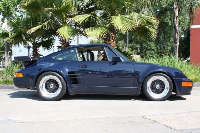 | Porsche with Donovan all aluminum small block Chevy with 400 HP. Extra 100 HP with added nitrous. Aluminum cylinder heads personally engraved with Smokey Yunick's signature. the headers are custom and exhaust is stainless. MSD ignition, raided aircraft lines that feed coolant via a belt driven water pump to a front mounted radiator. 20 gallon custom fuel cell. Heavy duty 4 speed 930 transaxle, piece painted HRE wheels, emballa front fenders, ide body rear fenders, ombination Porsche and Vintage A/C. |