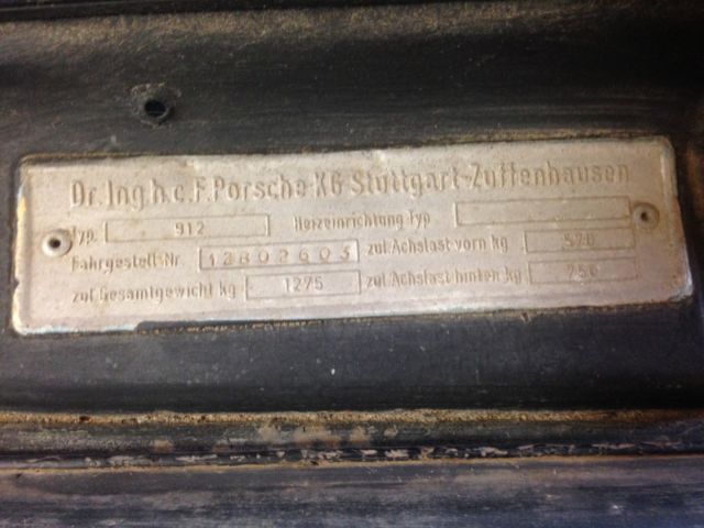1968 Porsche 912 with optional 5 speed. tThis Porsche was on the road recently,2006 to be exact.this Porsche had new heads installed in 2004,it has very little rust, ne hole about the size of a pencil and one hole in the package tray about the size of a quarter.I can find no holes in the underside body pans.. A couple of the emblems and door handles are missing as it was getting prepped for paint.The body is very straight,i can not find one dent.I purchased this car from an aquaintence who moved out of state,it is a bit complicated for my available knowledge. I set what i believe to be a fair reserve,i also removed the seats to show the interior floor pans,feel free to contact me with any questions or refer to my feedbackOn Aug-25-15 at 03:23:15 PDT, eller added the following information: in addition to the other info this is a numbers matching car On Aug-26-15 at 20:06:19 PDT, eller added the following information:id tag numbers and german words......NR-12802603 second set below Kunstharzlack..68-6801-L i hope this helps