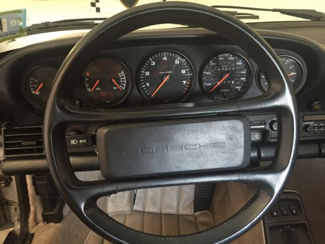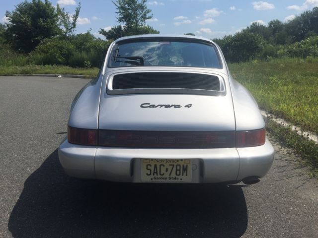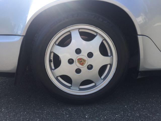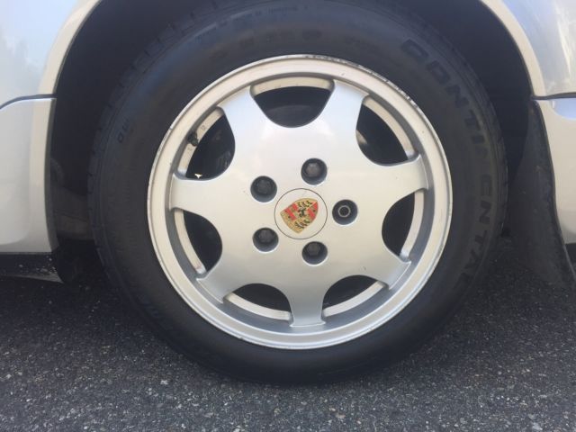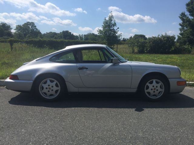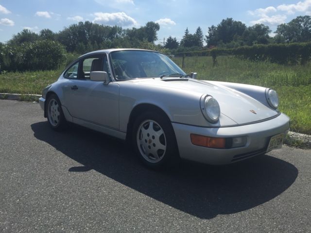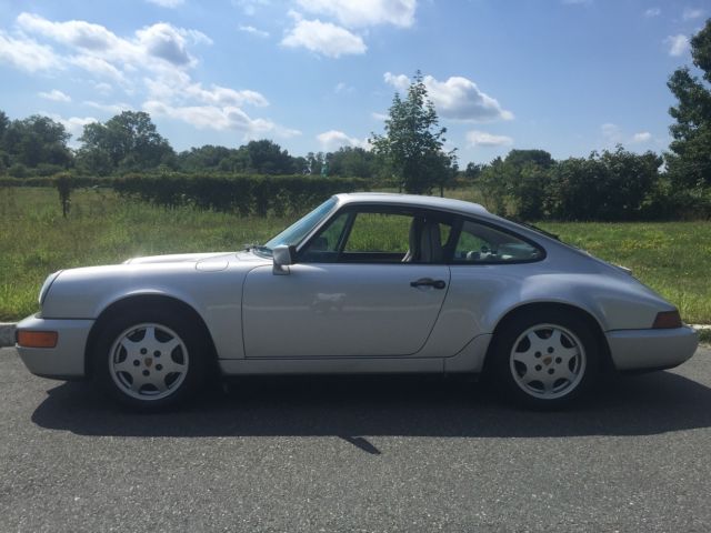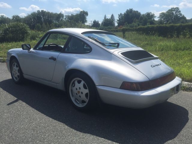 This is well presented, ell maintained 964 Coupe finished in Metallic Silver with Silk Grey interior trimmed with black piping. This car is equipped with a 5 speed manual transmission, eated seats, uffled leather, nd original Blaupunkt cassete radio. The condition of this first year 964 (Carrera 4) is very good relative to other 964's, articularly for the mileage. The car is either has had either two or three owners, ith the current owner buying it in 2004 and only putting about 16k miles on it since then. The car has a clear Carfax. We have TONS of maintenance records, oing all the way back to 1997. Powertech in Rockaway, J has gone through the car and found to it to be in very good condition cosmetic condition and it drives well. It has some scratches and a few dings, ut overall it presents itself extremely well. There is no evidence of it being in an accident or even any paintwork. It does however have the typical early 964 leaks. Because of this we conducted a leakdown test of the three first (and easy to get to) cylinders resulting in cylinder #1 at 26%, 2 at 19% and #3 at 15%. This leads us to believe that the engine update has not been completed on this car to date and we have reflected this in our price. As a result of the inspection, e replaced the front rotors, ut on new tires all around and replaced the front trunk shocks. The only modifications found were front and rear adjustable sway bars, cone air filter and a clear bra on the nose. This car has the tool kit, ack and air compressor. PPI's welcome. If you're in the market for a great looking and great driving later air-cooled 911 coupe at a very reasonable price, ook no further. |