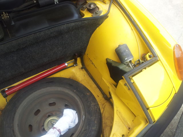 ONE OWNER SINCE NEW This Porsche 914 1.7liter was purchased new from the Lexington Kentucky Porsche Audi dealer in March of 1973 and is still owned by the originalpurchaser. The car is Sunflower Yellow with black leatherette interior. The car has beenrepainted in the original color and everything on the car is original. The original window sticker shows that the car is equipped with 5-speed transmission, enter armrest console, ppearance group, adial tires, -wheel disk brakes, ntegrated roll bar, achometer, resh air heating & ventilation and two way adjustable seats. The appearance group includes vinyl covered roll bar, ual-tone horn, hromed bumpers, og lights in bumper, ile-type carpet, 1/2J X 15 steel rimes, 65 X 15 radial tires. leatherette covered steering wheel, onsole under dashboard and leather boot for shift leather. The Suggestedretail price new was $4,499.00 plus $320 for the options for a total of $4,819.00. The car is in average condition and can be driven on a regular basis. It is going to need some work in the long term. The engine and transmission seem to be in good working order. The car runs great and shifts smoothly. The clutch is fairly new. The front end is a little loose. The CV boots seem to be in good condition. The odometer shows 87,950 miles but it has not been working for awhile. I think the car probably has about 95,000 miles on it but will have to be sold as "actual miles unknown." The interior is in really nice original condition. The seats andcarpet are in good condition and there are no cracks in the dash board. The driver's seat does have a small tear but it can be easily fixed. There is some rust on both the top surface of the car as well as underneath. I have tried to show everything on the car in the posted pictures but it is probably best seen in person in order to fully understand the car's overall condition. The passenger side door lock post came loose and has beenrepaired. It worksperfectly but the repair was not the prettiest. There is some rust underneath but I think it can be repaired other than cutting everything out and replacing with new parts. It is not something that would have to be done in order to use the car as a driver. I have more pictures if you are interested and will be glad to send them to you via email. |