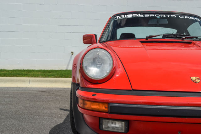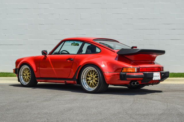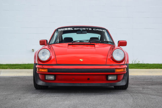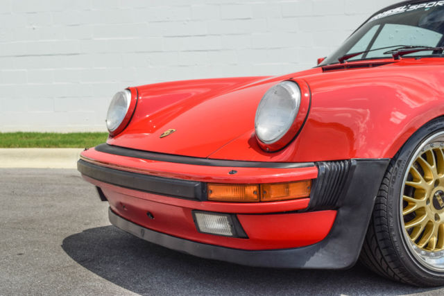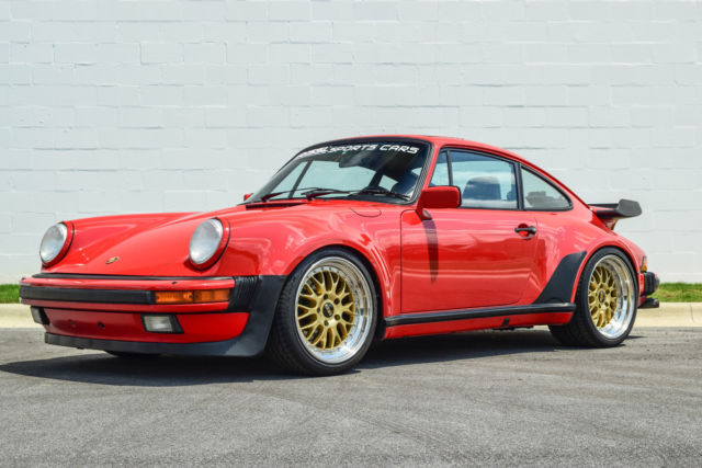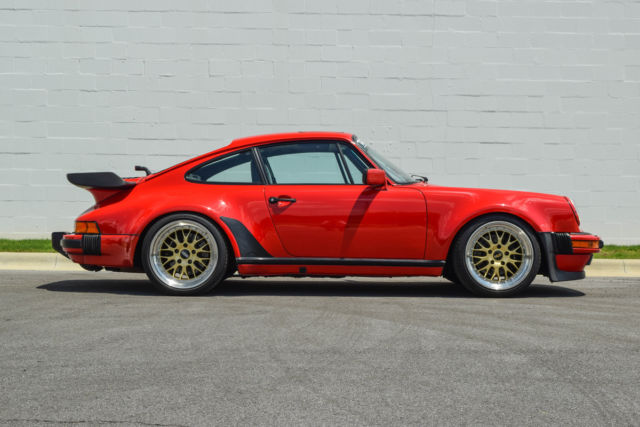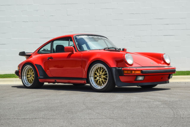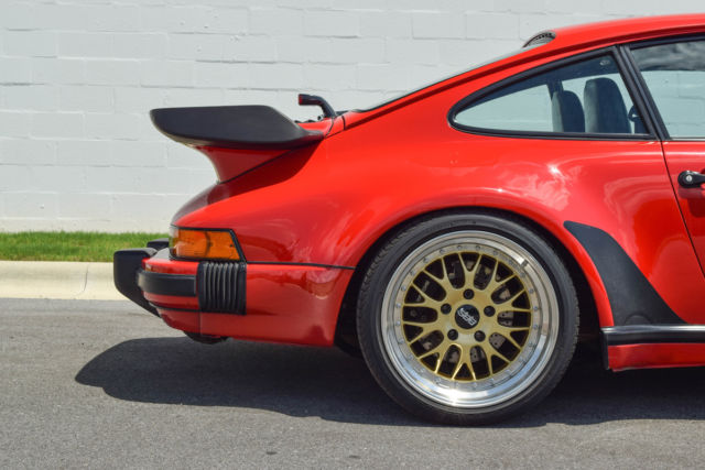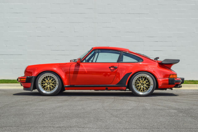 This 1987 Porsche 930 turbo in Guards Red on Black.. It comes with 17″ BBS LMS 3 piece wheels. ROW Spec Ride height. All original,Only not original is the strut tower braces, adio and Wheels. Fairlywell document car. The car runs and drives great. No issues Feel free to have a PPI done. This is a No worry car. COA list options as