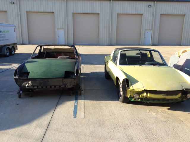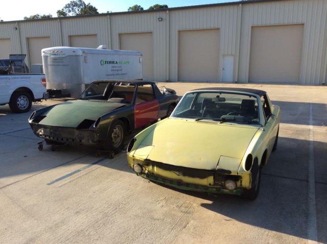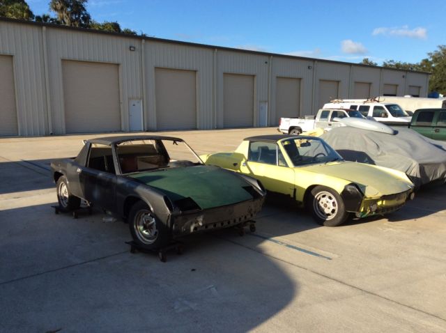 Porsche 914s.one 1974 Porsche 914 and a 1970. The '74 has a Yellow exterior with black and white interior. engine is a 1.7liter. Needsrebuild.5 speed transmission, our wheel disc brakes, ahle, mpi &steel wheels, /c. This car does not have the typical rust in the suspension areas as most 914s suffer from. Battery area is . Carwas under going a freshening up, ut I am to busy to finisheither car. Parts includechrome bumpers, xtra door, eats, arga tops, uel system parts, eber carb, xhaust systems, tainless steel heater boxes, The 1970 Porsche 914 is a roller,it is grey.This car still retains the original floors and rear passenger side suspension console. There are enough parts (less one transmission) in this package to build both cars. There are two extra engines one 1.7 and 2.0. Two 911 front suspensions to help with 5 lug conversion. The yellow 74 would need minor cosmetics, nd the engine /trans installed to be back on the road. The grey 70 needsa little more work.Both cars Have clear Florida Titles. Selling these to make room at my shop for customer projects. Any question Feel free to call 386-689-8504.