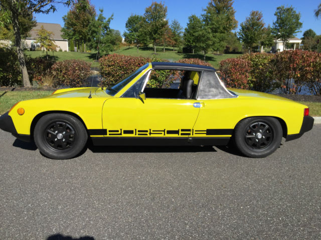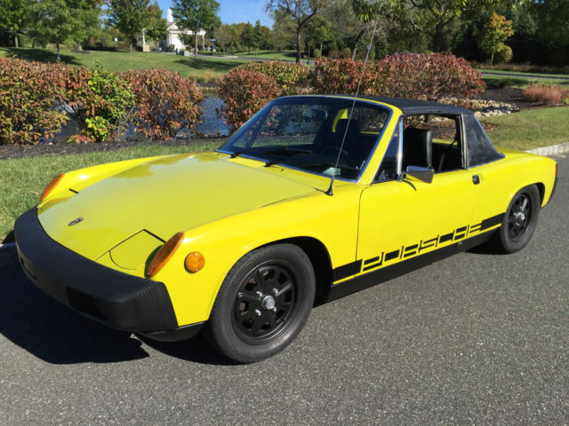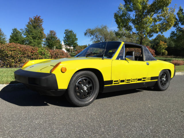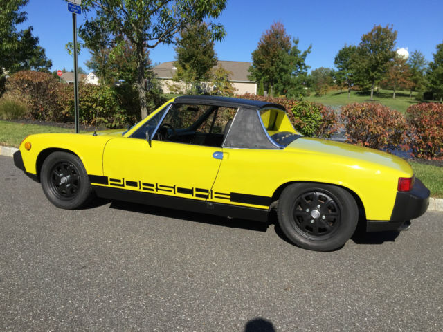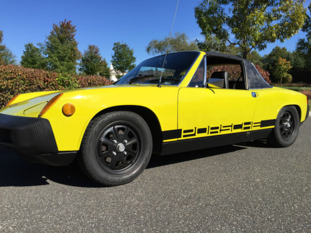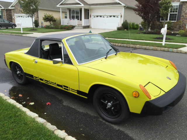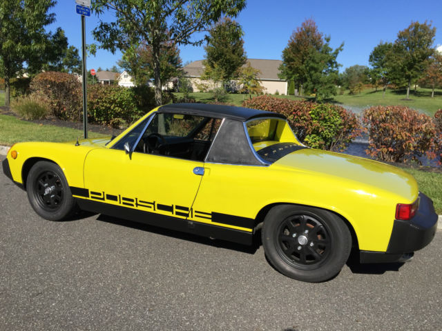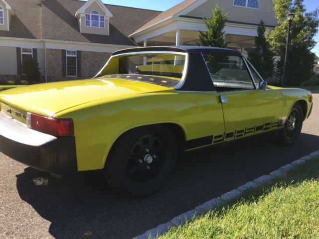 For sale 1975 Porsche 914 with the 1.8 liter fuel injected engine. Just completed restoration of the interior including new carpet, loor mats and seats. Also added new tires and 4 original fuchs. Actual mileage is unknown, ince speedometer and odometer no longer work. Purchased from last owner who owned the car for over 25 years and drove it sparingly. Car is Berber yellow (L11D), one year only and a very rare color. Car runs and drives very nicely, ut as with most Porsche 914 does have rust issues, ut very little on the body. I believe most of the rust is limited to the underside of the car, owever, 'm no expert on these cars. Body does have some bumps and bruises as you would expect on a 40 year old, nrestored car, ut not a bad 10 footer as you can see from the pics. Does have a few oil leaks, ut as I understand, ot uncommon for these cars. Probably oil cooler or push rod tube seals. Was going to do a complete restoration, ut too many other commitments, o my loss is your gain. Car is being sold as is.