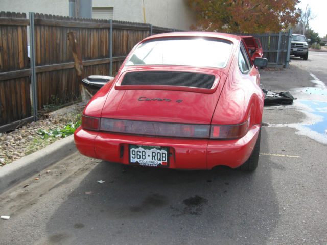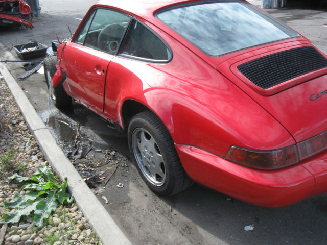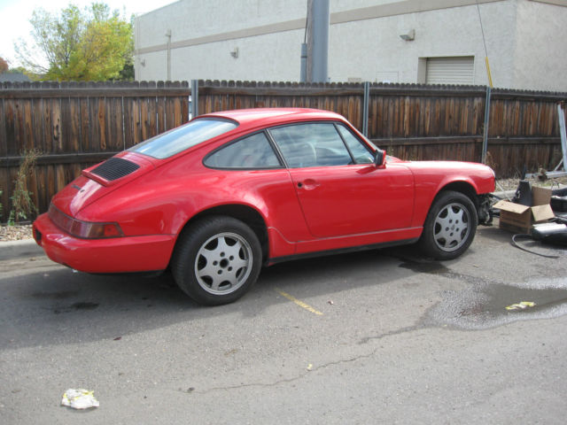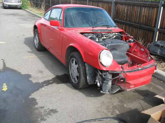 | A good project for a 964 fan, have too many other projects so this one has to go. NO ENGINE OR TRANSAXLE!!!! Damage is to left front end of car, ee pictures. No hood, umper or driver side fender, f you don't see it it is not there. Door gaps good, ar should be a nice fix. Car has clear Colorado title (see picture) not salvage. I think $10,000 will buy this car, ontact me w questions. Not many 964 coupes up for sale, his is your chance, all me with specific questions, ave, 20-272-5917 |