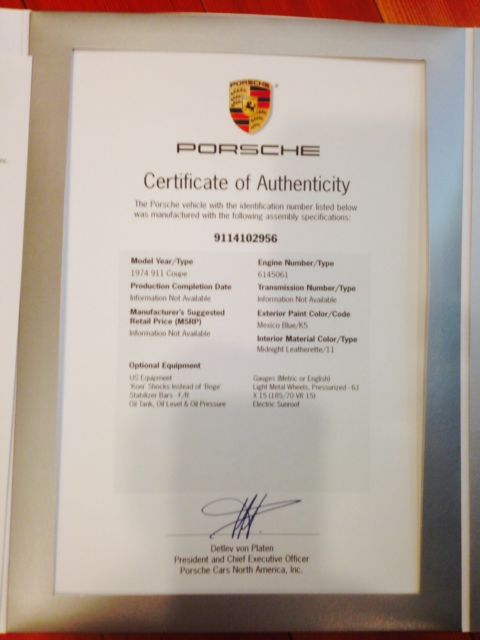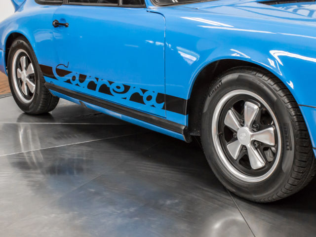 Here we have a beautifully restored 1974 Carrera tribute for your consideration. The engine and transmission were removed and the engine was rebuilt to S specifications using all factory parts. The transmission was in great condition just a flush and fill and it is shifting flawlessly. The engine and transmission are numbers matching and original to the car. The fuel system is completely refreshed as well as all engine accessories and runs great. The car was painted with mechanicals removed so the jams, runk and engine bay are properly done in original color. The paint was originally Mexico Blue from the factory and was restored correctly. The suspension, rakes, ushings, ack, ods and related bits were all new and installed during this extensive restoration. The Fuchs wheels are in excellent condition as well as all glass and seals. The interior is very nice with the correct steering wheel and power windows. There is just 9200 miles on this car since it was restored to new factory condition so it is like getting a practically new car. It shows extremely well on close inspection and it is a no excuses car ready for show, ollection, r can be driven all day every day if desired. It runs very strong and tracks perfectly and stops as it should. Very quick and responsive and offers no disappointments to any buyer. I built this car at my well known Porsche shop "Nuen Werke German" with the intention of creating a no expense spared tribute 911 Carrera that I could take to shows, in, nd at the same time attract business.
