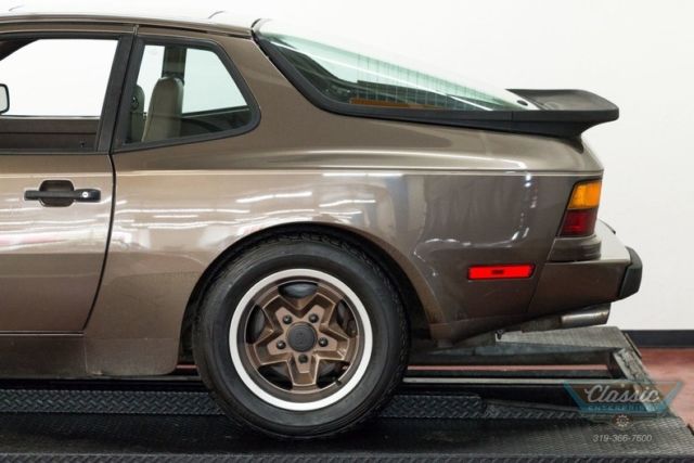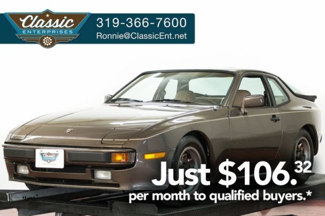 1984 Porsche 944 It took a while for the Porsche-files to embrace any of the front engine water cooled offerings from Stuttgart and the early 924 and 944 were not welcomed with opened arms and heavy right feet. But as in a lot of family relationships the disdain becomes a bit tempered with age and a modicum of respect emerges. After all, we all have some good attributes. And it was one of Car and Drivers 10 Best at that time. This particular original 944 is dressed in its original livery other than carpet, the factory stuff just didn't hold up. It is powered by the original 143 horsepower 2.5 liter I4 and runs through the, not often seen, automatic transmission of the day. It has the usual compliment of factory options including air, power windows, full gauge compliment and a Blaupunkt stereo. The contoured seats are in Tan leather and in great shape. The paint is original and does show some signs of road use on the nose, in the form of minor chips, the glass is very good and it runs out like it should. No it's not the fastest Porsche, but hey it is a Porsche and we all can't drive 959s. Features Fun to drive responsive 2.5 Liter with fuel injection 3 Speed Automatic Transmission 160 MPH Speedometer with only 70900 miles on the Odometer Factory Correct Leather Steering Wheel Color Keyed Alloy Wheels with P21560/R15 Black Side Wall Radials Integrated heat and air conditioning 7000 RPM tach with 6200 Redline!<.li> Power Steering, Sun Roof, Door Locks, Exterior Mirrors It still wears all of its original Sable Brown Paint Finish Very nice Camel Tan Leather Sport Bucket Seat Interior Performance Tuned Suspension for Ultimate Control 4 wheel Disc Brakes and Performance tuned Exhaust Full Console with Storage Full factory Instrumentation Front Air Dam and Functional Rear Deck Spoiler Blaupunkt Premium Stereo Cassette Heated Rear Window Detailed Engine Bay and Trunk with Mat Jack and Spare ul> |
