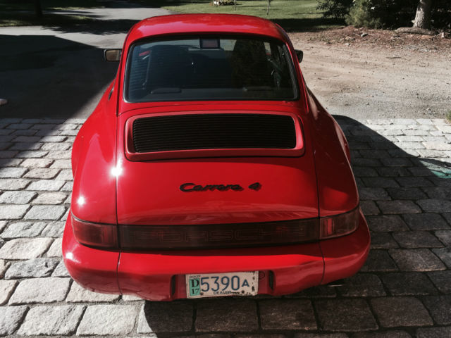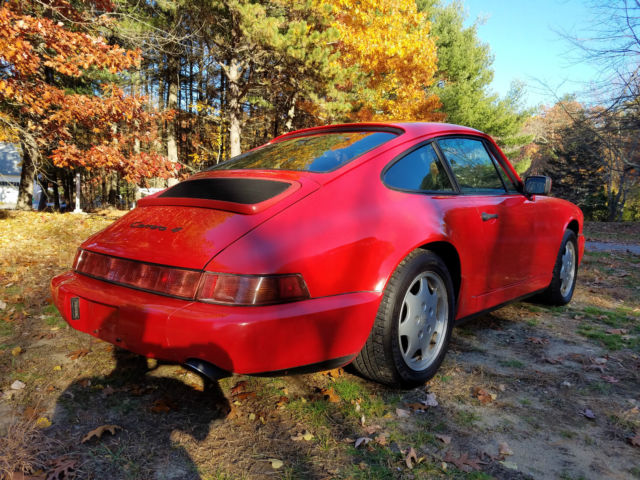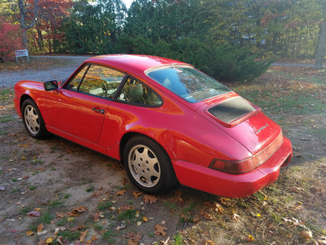 Here we have a 1989 Porsche 964 Carrera 4. It is red with black interior. It is alsoa very early production car, builddate 2/89(#179).Porsche used 230 red/black 1989 964's for a promo video and poster. I have included a picture of the poster. The video was shot in April of 1989 so it would almost certainly make this one of the cars pictured. It also has option code 900 (tourist delivery - access to the car in Zuffenhausen).It has been well used over the years (239k miles) but has had only two owners. The condition is fair, with several oil leaks, rust spots and some home owner paint work. Option codes are: 158, 454, 494, 650, 900.