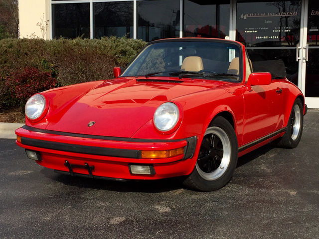 A fantastic example of the classic 911 cabriolet. This is an ORIGINALcar that has Great history and is Gorgeous in every way and low miles to match. Always garage kept. Beautiful guards red paint and tan interior with original leather in mint condition. Original top in great condition. Original books, tools, and keys. Full bumper to bumper check and major service completed in our service department. Anything and everything needed was done. Very high level exterior and interior detail including all four wheels refinished to like new condition. G50 transmission with 5-speed manual. Matching numbers with Porsche Certificate of Authenticity. Original Blaupunkt radio. Clean Carfax report. Only 77K miles, averaging less than 3,000 per year. If you have even casually followed the Porsche air-cooled collector market, you know that not only are you getting a beautiful car to drive, but a great appreciating investment also. Talk about a win-win!! Don't let this opportunity pass you by. We also have a very easy financing program with great rates and terms up to 10 years on this car!! Please call Ryan Daniel or Larry Daniel @ 919-851-4044. We will be happy to answer questions or help in any way. If you have a trade-in, please let us know. We will be glad to evaluate your trade. Thanks and Good Luck! |