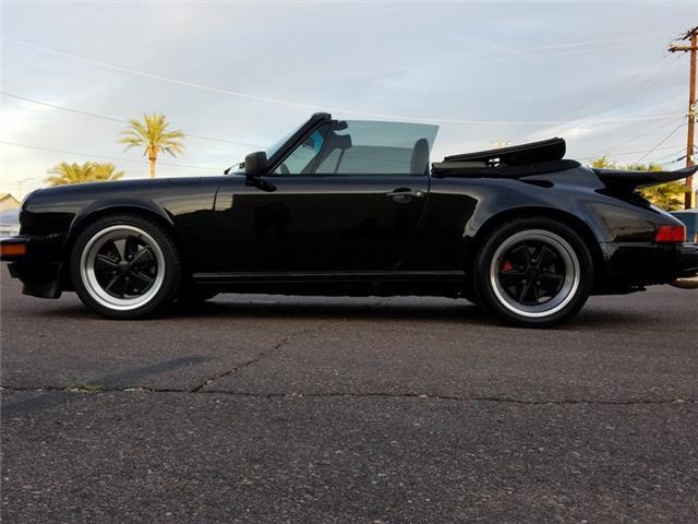 | Triple Black Convertible.. 3.2 litre, G50 5 speed, no rust, no accidents.. very clean dry climate Porsche, low mileage at only 123k.. very nice factory black paint, with excellent black Sport Seats, with perfect black top.. AC blows cold, power windows and power seats work.. factory manual top car.. runs and drives perfect.. 17 inch Fuchs, excellent tires.. no dash cracks.. includes books, manuals, and factory maintenance log book.. |