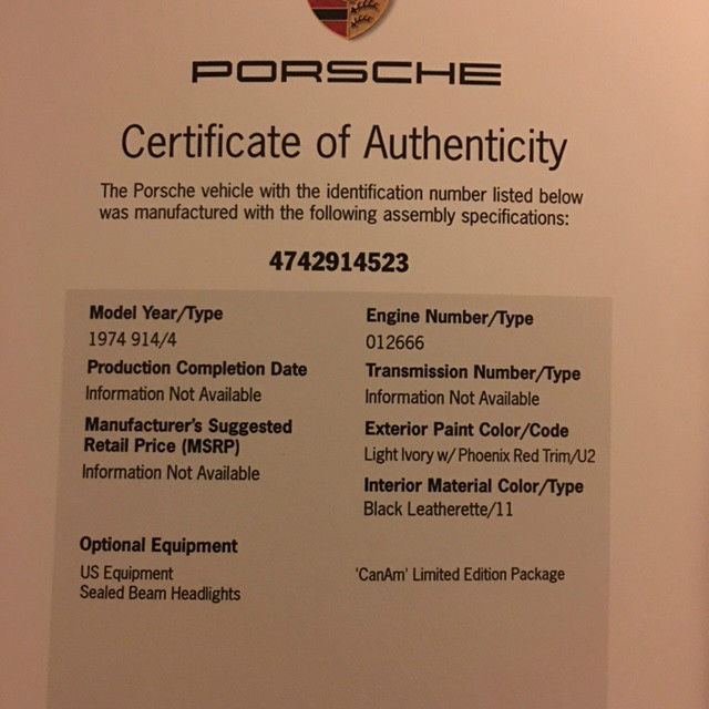 Extremely Rare"Creamsicle" LE 914 with COA and officially listed on the 914 LE Can Am registry. Extensive mechanical service and tune up @ $1774., new Dunlop star spec z2 tires @ $600 and new Bilstein rear shocks @ 500. This is a GREAT driver " As Is" or ready to restore back to original Can Am color scheme. Presently it is painted green. The motor is a period correctnon-matching numbers 2.0 with stock FI. Motor runs strong and fast. Some rust in the usual places-NO rust in the floor pans, trunks, headlight buckets, etc. LE interior complete with center console and leather shifter boot. Dash cracks included. Upgraded with short shifter kit. All original Mahle wheels & spare in excellent condition. This is likely the last of maybe 200 Creamsicle LE Can Am cars left on the planet. You will love this car!