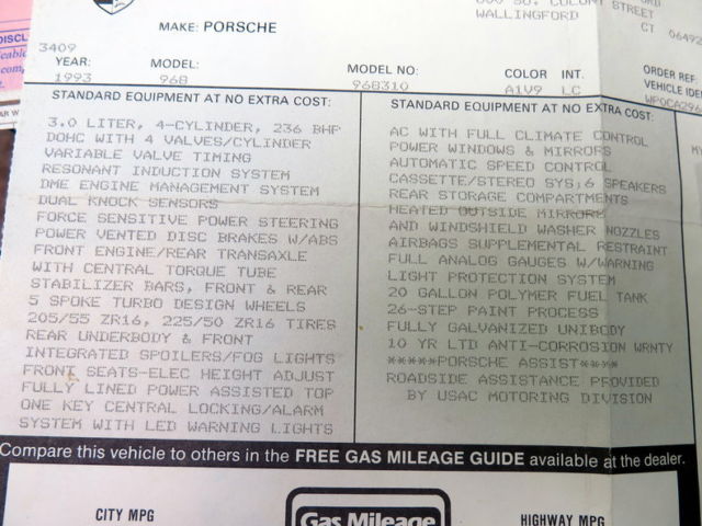 Description of 1993 Porsche 968 Base Convertible 2-Door |