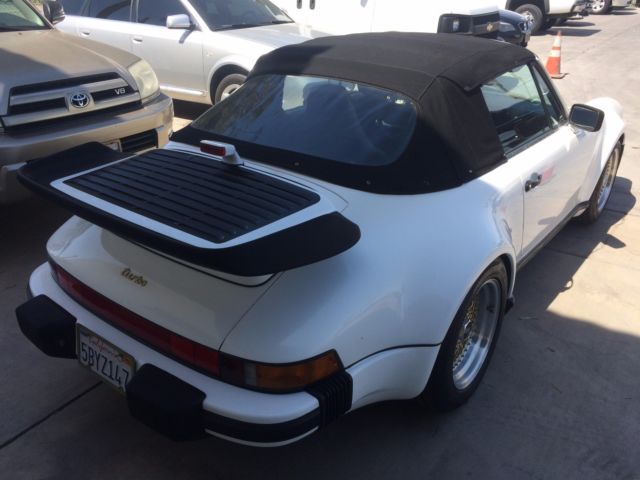 NO RESERVE 1983 PORSCHE 911 CONVERTIBLE UPGRADED TO 1987 TURBO CABRIOLET LOOK WITH ALL OEM PARTS ALL STEEL ......ALWAYS DETAILED AND SERVICEDIT WAS PARKED IN THE INDOOR GARAGE AND WAS ON NON OP FROM 2005 UNTIL FEW MONTHS AGO IN SOUTHERN CALIFORNIA CITY OF HUNTINGTON BEACHIT WAS OCCASIONALLY DRIVEN AROUND THE BLOCKIT HAS 67K ORIGINAL MILES CLEAN CAR FAX..NOW IT IS IN STORAGE IN INDIO NEAR PALM SPRINGS CALIFORNIAORIGINAL CA CAR LEASED TO MIRAMAR MOVIE PRODUCING COMPANY IN HOLLYWOOD CA IN 1983 AS A SILVER 911SC TARGA THEN WAS PURCHASED BACK WHO CONVERTED THE CAR TO LOOK LIKE A 1987 930 TURBO CABRIOLET IN 1987 EVERY THING WORKS EXCEPT THE AC AND THE STEREOMANUAL TOP LOOKS LIKE NEW WITH CLEAR REAR VIEW TIRES ARE BF GOODRICH SERIES BRAND NEW INSTALLED FEW MONTHS AGO WITH A NEW BATTERYTHE OUT SIDE IS PERFECT PAINT JOB GLASS OUT WHEN CONVERSION WAS PERFORMED IN 1987 AND IT SHINES YOU WILL NOT DOUBT IF IT IS NOT A REAL TURBO ON THE OUTSIDE THE INSIDE IS ALL ORIGINAL FACTORY INTERIOR WITCH CAME WITH THE CAR ALL GOOD TO EXCELLENT CONDITION DRIVES WELL... INSTALLED FUEL FILTER IN 2005 AND PARKED SINCE FUEL FILTER IS OVER 10 YEAR OLD BUT HAS 100 MILES ON ITI HAVE RECORDS AND INVOICES FROM NEW UP TO 2005CAR WILL BE RELEASED ONLY AFTER PAYMENT IS CLEAREDSOLD AS IS WHERE ISLOCATED IN INDIO CA760-2758710 |