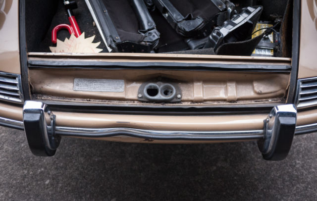 This 1967 Porsche 912 Targa is a soft-window example in largely original condition with Sand Beige paint and a five-speed manual transmission. The car retains its original engine. Recent work has been performed on the valves, rockers and fuel pump as detailed below along with a tuneup, brake flush and new ball joint. The sale includes a Porsche COA, a good stack of service records back to 1995 and a clean title. Sand Beige code 6607 is the car's original color and retains a good shine - it has not been gauged but its overall patina and lack of overspray or evidence of repair seem to be good indications of originality. Trim is all present including a reproduction sideview mirror fitted in 2015 - other bright pieces show moderate pitting. Glass appears undamaged, while one front signal lens is faded, both taillights are crazed, and weatherstripping shows its age throughout. Factory optioned 15″ chrome wheels are oxidized and wear matching hubcaps and older Michelin tires. The trunk area shows a matching chassis number, and a factory tool kit is included in the sale. Inside, black leatherette seats are in good condition for a driver but show piping and cushion wear commensurate with age. The padded vinyl dash is apparently free of splits or damage, though a bit warped from age. The speedometer was repaired in 2004 and now indicates just under 96k miles. Other instruments, controls and trim pieces have a general patina from use but appear complete minus a single dash knob. A 1970s Blaupunkt cassette player resides in the dash, while a more modern head unit is mounted underneath and supplies speakers cut into the door panels. Out back, the 912's 1.6-liter flat four made for better distribution of less weight over the six-cylinder 911. The original, numbers-matching mill was pulled in 1999 at 72k miles for a partial overhaul, resurfacing and balancing - a 2009 compression test 22k miles later showed cold numbers at an even 150psi. Weber 40 carburetors have replaced the stock Solex units. The engine number stamping matches the included COA and service paperwork. A February 2015 service included resurfacing of the rocker arms, valve shimming, new valve cover gaskets and fan belt, a tuneup and oil change and fuel pump seals. New decklid supports were also fitted. Underneath, the optional 902 five-speed manual transaxle is working properly. |