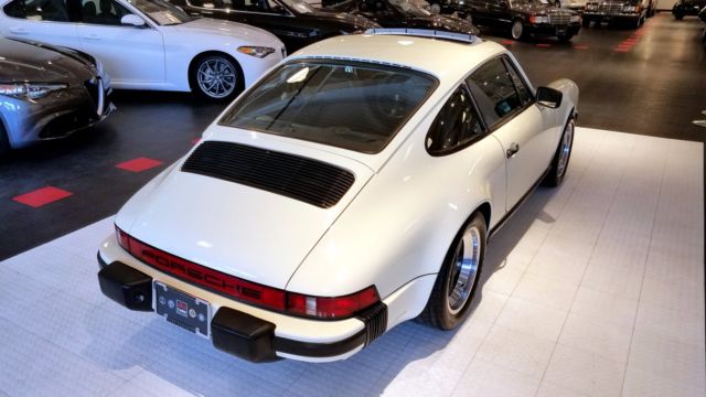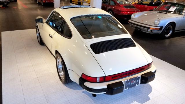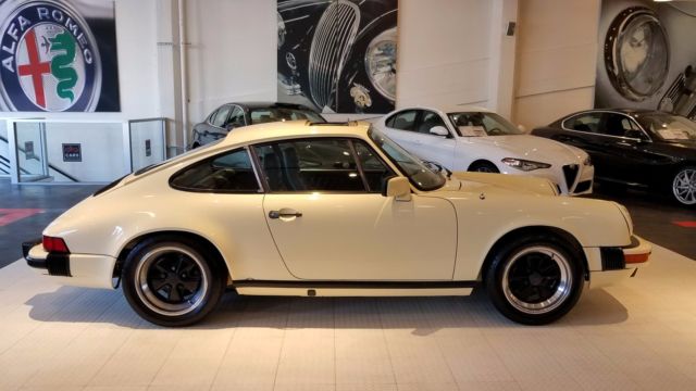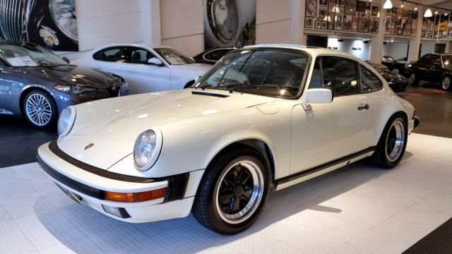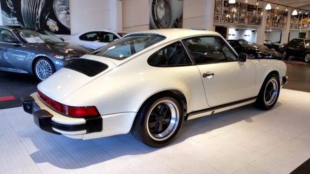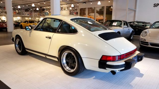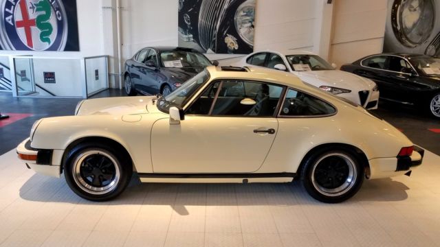 An extremely nice and well cared for 911 SC. Finished in Chiffon White, this 77k original mile SC has been a California car for most of it's life. All Manuals and Service Records are present and it retains the matching numbers original drivetrain. The car still boasts quite a bit of original factory paint, with the only paintwork on the car to correct rock chips on the nose, and the removal of the SC badging on the decklid. No rust or corrosion issues are present. Tasteful updates include 16...x7"and 16 x 8" Fuchs from a 930, H4 headlamps, decklid badging removed. Overall, the car was updated to look like a later G50 car. The chain tensioner update was performed, and currently the car needs nothing mechanically. This is an incredibly nice and incredibly strong driving 911 SC.