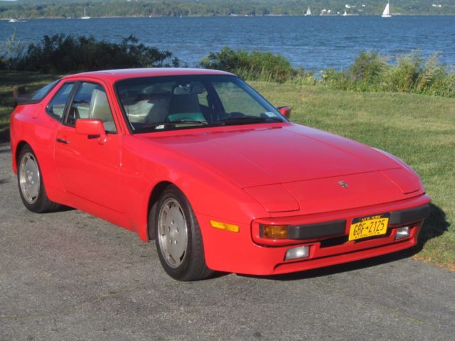 1987 Porsche 944 S. 2.5 liter 5 speed. Guards red with tan leather interior. The 'S' model gives you the dual cam 16v 190HP engine now upgraded with custom performance ECU chip. The engine was completely rebuilt less than 3,000 miles ago. 5 speed trans with recent clutch. Many upgrades and a huge stack of receipts and maintenance records. High performance suspension lowered 1.5" with 250lb front springs, 28mm rear torsion bars, Turbo S sway bars, Koni yellow adjustable struts and ploy bushings all around. Brey Krause front strut brace. K&N air filter, Hawk HPS brakes with stainless lines. Short throw shifter. AM/FM Sirius, USB, handsfree phone and bluetooth. 16" Goodrich Gforce Sport all season tires with good tread plus 2nd set of high performance Hankook Ventus RS3 summer tires and original Porsche wheels. Small paint issue on RH lower quarter panel. Car has 184K miles, runs like new. Well maintained with detailed service history. Includes all the goodies: sunroof bag, Porsche tire compressor, factory spare and tool kit. Ask questions before bidding.