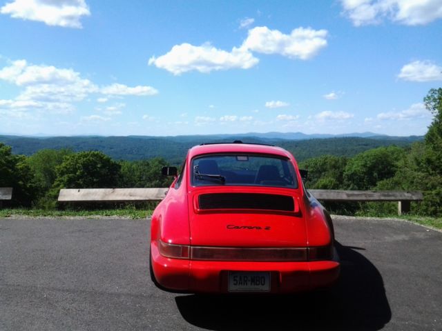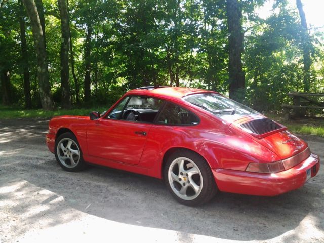 My 1990 964. I have owned this car for the past four years and have enjoyed every minute of it. These are wonderful cars to own and drive. When I first took ownership of the car I had a good deal of maintenance done from plugs/wires, fan belts,gear oil,all fluids,clutch slave, some oil lines, brakes, and new motor mounts. This is a beautiful car and runs strong. Handling is tight and direct. The car does however still need some work that i never got around to. The windshield has a star crack down by the wipers, there is a rip on the passenger seat, the blower motor for the heat/ac needs to be replaced, there is a scratch on the roof, and as of recent the power steering has begun to leak at the rack, and will most likely need to be replaced. Please email me with any questions. You are welcome to see the car prior to bidding. Thanks, Patrick