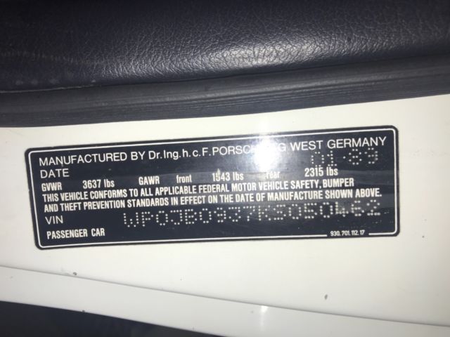If you are looking for the best 1989 (last year) G50 930, this is it! NO RESERVE!!!!! CAR LOCATED in ORLANDO FLORIDA AVAILABLE FOR PPI FROM ANY POTENTIAL BIDDER Super Clean 1989 TurboWhiteExterior Original Paint67,000 documented original milesFactory Original Blue Interior (rare)Factory G50 TransmisionCertificate of Authenticity The current owner is a Porsche enthusiast the searched for several years for his Dream 930. White with blue interior and in factory like new condition. It took him a while to find it and after several years of ownership and for personal reasons he needs to sell it. The car has some small modifications from factory (steering wheel, ehaust, intake, radio) but all original parts Are included on the sale as you can see in the pictures.The car currently has 18" RH wheels, the original 16" fuchs wheels are also available, the winning bidder chooses one of the sets (Original Fuchs or 18" RH). The car was featured on the September 2009 Issue of Classic Motorsports Magazine This is one of the best in the country LAST YEAR 930 Available for SALE!!! DO not miss this oportunity!! |