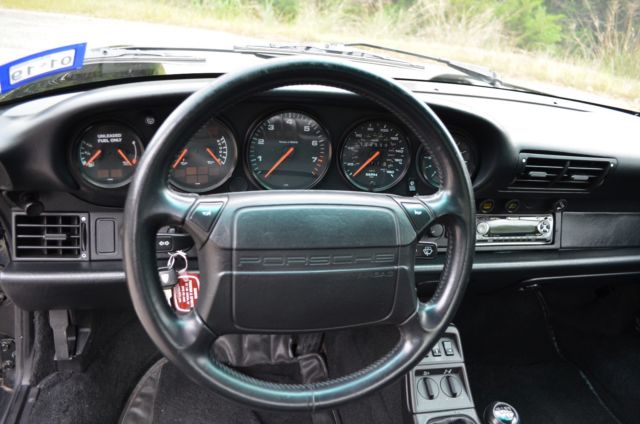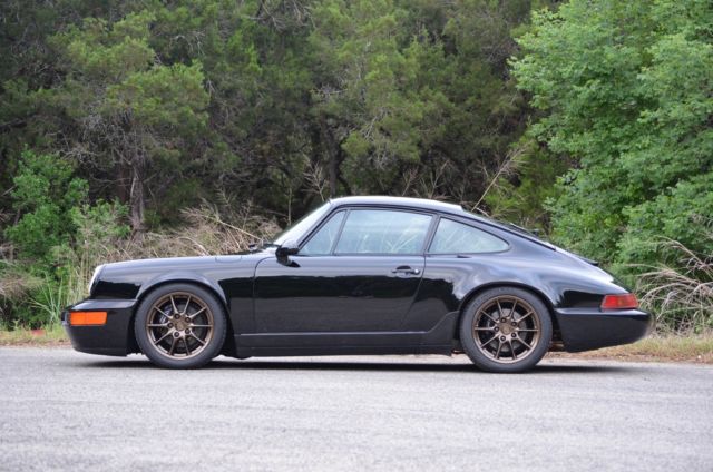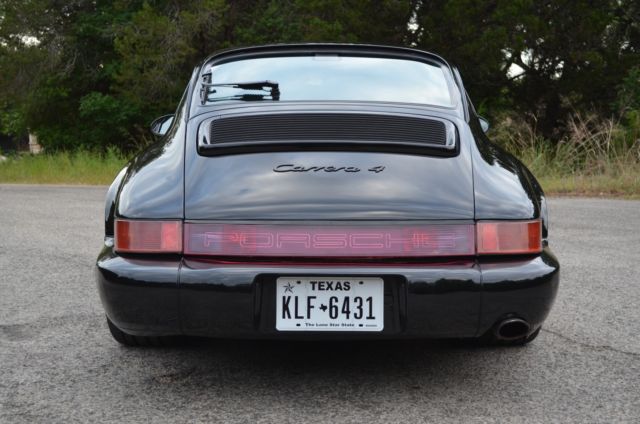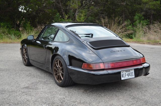 1990 Porsche 911 C4(AWD) coupe Overview: I’m the second registered owner of this 964.I purchased it from a dealer in NY who aquired it from the original owner who owned the car for over 25 years. When I bought it a little over a year ago, I was just looking for a nice little stock 964 to have some fun with until my other 911 project was complete. Unfortunately for my wallet, I like to tinker. In addition to some performance and asthetic upgrades I also had a significant amount of maintenance performed on the car during my ownership. The car has been an absolute blast to own and the next owner will have a very well sorted car. The car is still mostly stock with some bolt on goodies. With the wheel/tire combo and suspension upgrades the car feels like its on rails. With the upgraded exhaust and Steve Wong chip, the engine comes alive and sound great. Its well documented that these performance add ons bring the crank horsepower to around 280-290HP. As most Enthusiasts know, the 964 manual coupes are getting harder to find as many of them are being widened, backdated, Rallyed, etc. so this is an opportunity to pick up a good driver+ quality car at a fair price. In the one year+ that I’ve owned the car I have spent almost $14K(Have extensive receipts) on upgrades and maintenance items to make this a really fun, dependable, and good looking car. Maintenance Performed: -Replaced many miscellaneos cracked or missing plastic parts and switches Upgrades(Performance/Asthetic): -17x7x9 Porsche 10 spoke wheels(Powder Coated Bronze)+Conti DW Tires **All work was performed by Werks11 in Temple,Texas. Overview of car: This a a clean, strong running car with only 120K miles on the clock. It looks good, drives good, and gets noticed wherever you go. This is not a show car/garage queen but a nice Porsche you can reliably drive without the fear of a rock chip.You can use this car for what it was built for, Driving. For an almost 30 year old car its in pretty darn good shape. The paint is driver quality but very presentable and the interior is in nice shape. The Good: -It’s a black on black 964 manual coupe…its an awesome car thats fun to drive! Not as good: -It’s a 964 so it drips some oil, but its not too bad. Ony needed to top the oil off once during my ownership and that’s very normal.-It does a have a rear end collision on the Carmax report but otherwise clean title -The A/C just recently stopped blowing cold which makes me think there may be a very small leak. The A/C system was overhauled under my ownership and was blowing cold. |