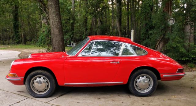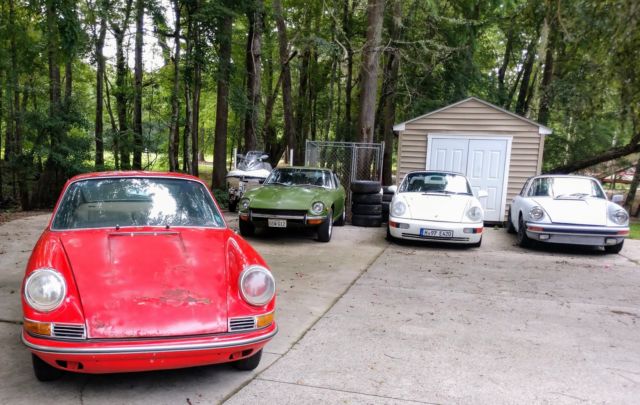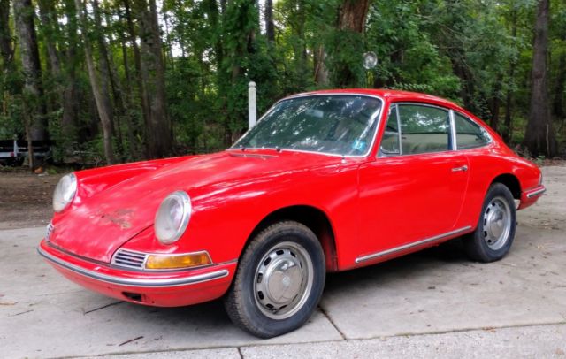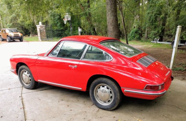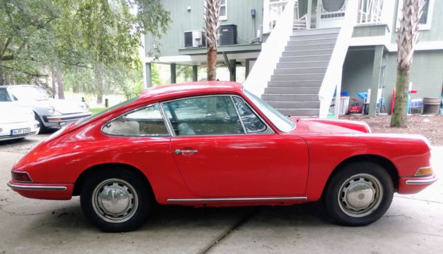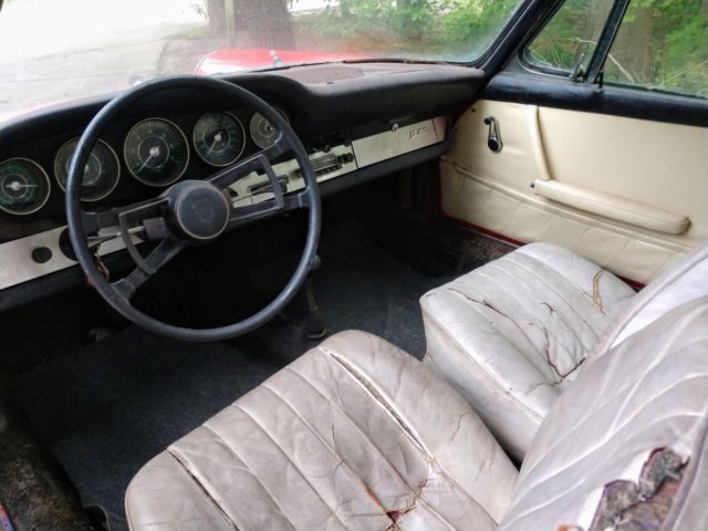 You're viewing my rare and highly optioned 1966 (12/29/65 build date) short wheelbase Porsche 912 coupe. This car was originally delivered in very rare Golf Blue paint code 6603 over beige (almost white) leather interior (seats, dash and door panels are still the original leather, not vinyl!). The car was sold new in Spartanburg, SC and has spent its entire life in SC and NC. The car was painted red many years ago, but it really should be stripped and taken back to its beautiful original color! The last pic shows what it would look like restored back to original. The car overall is very solid. The original front pan is exceptional and floors/longitudinals are very solid with just a few small spots that need minor attention. Rockers, doors, rear deck lid are excellent. The hood has some bubbling and paint peeling and will need some attention but can be saved. All glass is original and in great shape. Brightwork around the doors and windows is good. Rubber seals around quarter windows and deco trim is newer. Rear grill is in excellent condition. Original chrome bumper over-riders and windshield wipers are in front trunk, along with the original spare and very nice tool kit. The car was built with several rare options (see pic of factory Kardex sheet): * First off, the color 6603 Golf Blue is quite rare* Beige (almost white) leather is rare* Webasto heater* Seatback mounted headrests (headrests are missing but all mounting hardware is present)* Tinted glass* Fog Lights (missing)* Rear window wiper (very rare option, missing motor and wiper arm)* Blaupunkt radio with speaker and antenna signal knob* Chrome wheels with chrome caps, Porsche logos (all 5 rims are 12/65 date coded)* Talbot mirrors (fender mounted, very rare option, missing)* Clock...andthe rarest of all...* VDO temperature gauge for outside temp! EXTREMELY RARE factory installed gauge! (see pic) The car is still all matching numbers confirmed with the Kardex sheet (engine and tranny are both original to the car). Still has its original Koni shocks! Not listed on the Kardex, but original to the car, are heavy duty front lower control arms. Another very rare option. This is not your run of the mill old rusty 912. This is going to be a very special and stunning car when restored, and an excellent investment opportunity! This is a rare chance to buy an excellent car to restore that's very original, highly optioned, and not a rusty mess. The motor has been sitting a few years and is not running. I'm sure it will need a rebuild. The car "should" be restored back to its stunning original color, but with some work, it could be enjoyed as is once the motor and brakes, etc have been gone thru and hood repainted. I really would love to restore her for myself but I'm in the middle of restoring my 1970 911E (factory Signal Orange) and between that and my wife wanting to pay off our river house, this must find a new home. As you can see I have several other 911's (a few of them not pictured, as well as two 928S's, a 240Z and a Lancia Scorpion. I'm thinning the herd to pay off this river house. Happy wife = happy life. I will sell to overseas buyers. Shipping is your responsibility, but I will gladly assist your transport company with scheduling pickup, etc. Please ask any and all questions prior to bidding, and have your finances in order. I require a $500 PayPal deposit immediately following the auction, and final balance is to be bank wired within 3 business days. No exceptions! Not interested in any trades. Clean clear title is in my name and in my possession. The car is at my river home in Conway, SC. Please only bid if a serious buyer. Thanks for looking and happy bidding. I will end the auction early for the right price. |