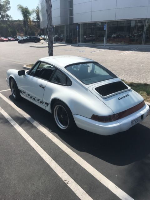 | 1991 911/964 manual, matching numbers, high miles on chassis, 2 owner CA car, 60k miles on documented rebuilt engine. New Carrera script, New aftermarket Fuchs Wheels, New Houndstooth cloth inserts on seats. Solid driving car with a clean appearance. |