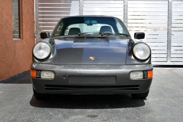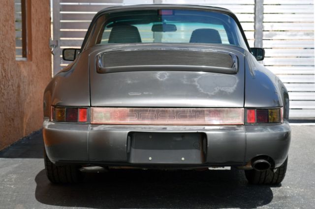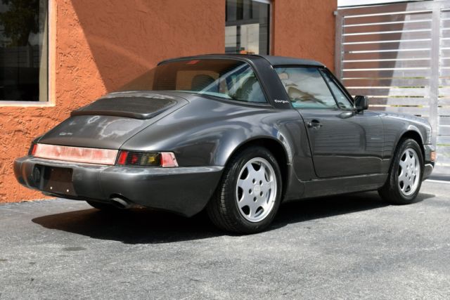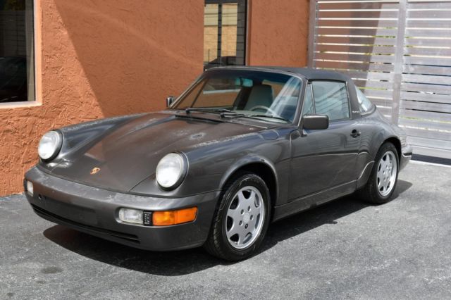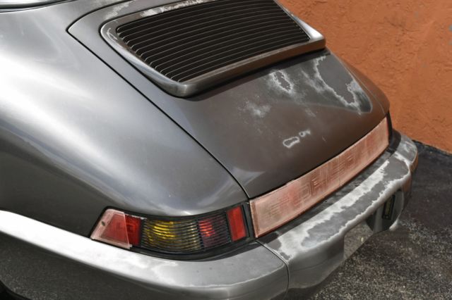 Great California 964 Targa in the very desirable Slate Gray, solid, dry, with a strong engine, drives great! With two previous California owners, and a clean Carfax, this car comes with the owner’s manual and the service manual stamped all the way up to 117K miles. There is no check engine light on the dash and the engine doesn’t smoke on start. Underneath the car is very solid and accident free, the plating and materials of the undercarriage are dry and in very good condition as you can see in the pictures. The paint and the interior are faded by the California sun. The interior needs work, the driver seat has a rip left side bolster. The Targa top has a few small rips and could use to be recovered. The taillights need replacing. The AC compressor needs to be replaced. This desirable 964 is the perfect project car for a light restoration or even a backdate project. With a cosmetic refresh of the exterior paint and the interior, the car will be a great addition to the garage. The gaps are straight, and the suspension feels solid. The wheels and tires are in good condition as well. See Video below https://youtu.be/Sbh6qHRv9AM Serious inquiries Call/text 305-527-6867 Eddie /305-443-7626 Bernard