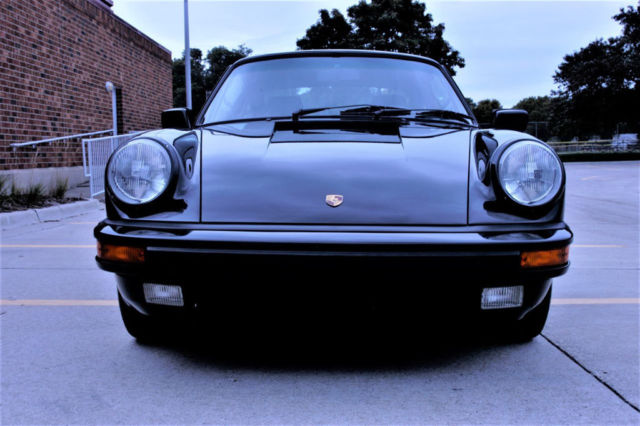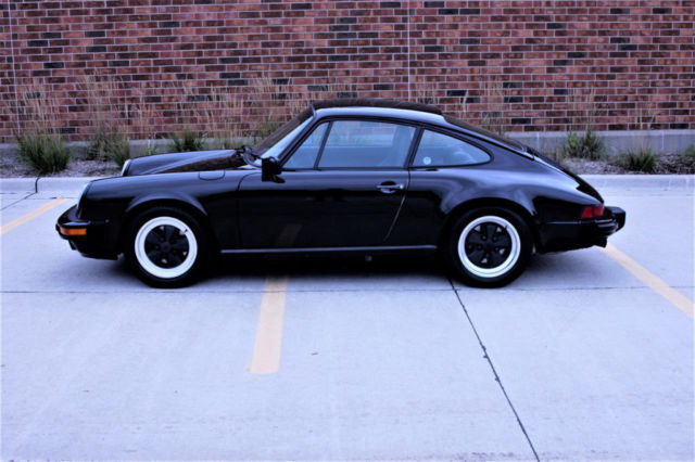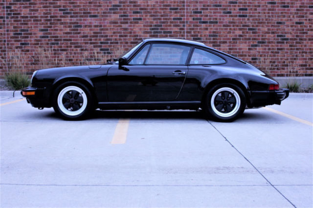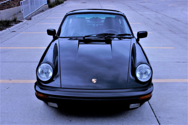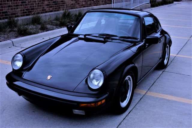 Vehicle Overview | 1987 Porsche 911 Carrera Coupe LOW MILES all ORIGINAL Black over Black | This is a two owner 911 Carrera Coupe, we sold it to the current owner in 2007 with 24,465 miles. This coupe is all original, no damage no accidents. The odometer now reads 31983. Nothing has been modified, even the original Blaupunkt Reno is in the dash and the air pump for the spare in the trunk! There is a radar detector installed buit that's the only non-factory item. Black over black, no whale tail, lightly optioned with 018: Sport Steering Wheel w/Elevated hub; 158: Radio-"Reno"-87; 395: Light Metal Wheels-Forged; 454: Automatic Speed Control and 650: Sunroof. The only wear in the interior is the leather edge on the driver's door map pocket, see picture. The leather and carpet look almost new, leather is not dried out, sills in great shape, we did replace the covers, the glue did dry out and they were loose. Steering wheel shows no wear, all accessories work, AC blows as cold as a 911 can. The Michelins have plenty of tread, no rash on the wheels. This 911 drives and runs as you expect of a low mileage example. The desirable G50 trans of course. Simple and elegant, unmolested, no accidents or damage, clean Carfax, classic color combo in exceptional original condition. Please reach out with specific questions.