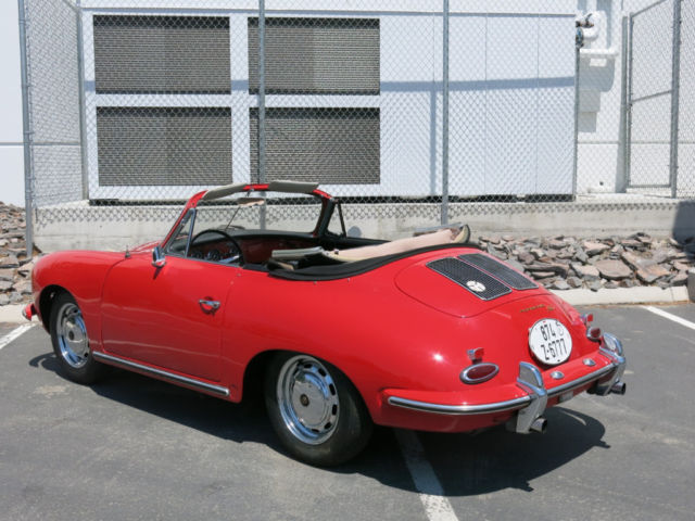 The 356 was a lightweight and nimble-handling rear-engine rear-wheel-drive2-door sports car availablein hardtop coupe and open configurations. Engineering innovations continuedduring the years of manufacture contributing to its motorsports success andpopularity. This beautiful example was purchased for our private collection in 2013 in Newport Beach CA. Finished in Signal Red over a beautiful black interior. The original1582 cc flat 4 cylinder air cooled motor runs strong and pulls hard. The factory 4 speed manual transmission shifts very well. The steering brakes and suspension... are proper and tight making this beautiful collector quality Porsche an absolute pleasure to drive. Included is a Porsche Certificate of Authenticity. The German Canvas convertible top is in excellent condition. This very rare and collectable Porsche would make an excellent addition to any collection. Please feel free to call James Krueger with any questions at 877-893-8496.1964 Porsche 356 SC Cabriolet Numbers Matching SCPorsche Certificate of Authenticity Signal Red over a Black InteriorGerman Canvas TopRecent Comprehensive Mechanical InspectionVery Rare SC Cabriolet Purchased in Newport Beach for our private collection DIGITAL PRE-PURCHASE INSPECTIONPlease click on the link below to view the digital pre-purchase inspectiondhy3dmmk
