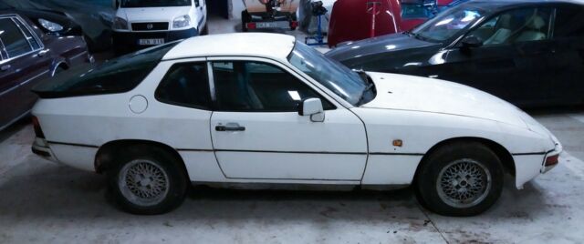 | Porsche 924 found in a southern Sweden barn.Car is number 0313 of the 3214 produced in 1985 last year of 924 production and assumingly with the 924 S ( pre-944) layout redesigned that year.Few owners only and very low mileage.The interior is in excellent conditionBody needs total repainting as well as a review of the fuel pump and system, exhaust and the air inlet for the alternator cooling hose.Sills need to be replaced ( spare parts provided )Crack on the dashboardSpare wheel is on 924 original rim.Motor started needs official inspection.Car needs to be fully restored.Car can be picked up in Sweden |