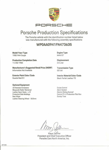 Vehicle Overview | 1985 PORSCHE 944 19,000 MILES " WHEN ONLY THE BEST WILL DO" !!!! CALL DAVE TODAY AT 630-327-8321 | Ok folks, this should be an easy one if you're seriously looking for one of the best available 944's around. Just a super low mileage 19,000 actual mileage Porsche 944 Sport coupe presented in Guards Red with Black Leather.3-Ownership from new, all service records from day one, all service up to date including Timing Belt tensioners, water pump ETC. Original sales invoice from new and absolutely beautiful inside and out. One will be very hard pressed to find another of this vintage and quality. First ownership was a 30-year love affair and recently out of a true Porsche Collectors Collection. This example is not to be confused with your average 944. This example is for the true Porsche enthusiast that," ONLY THE BEST WILL DO". Below you will find a brief list of features, options and most recent servicing. 1985 PORSCHE 944 - 19,560 ORIGINAL 3-OWNER MILES