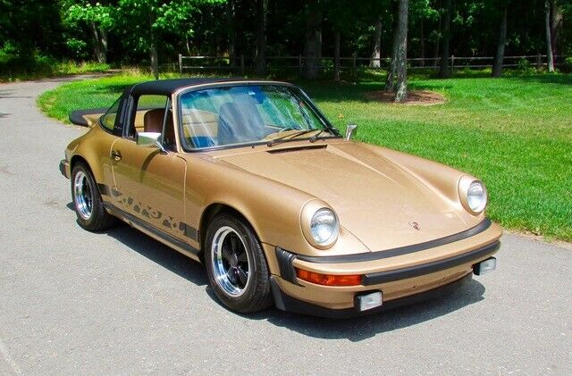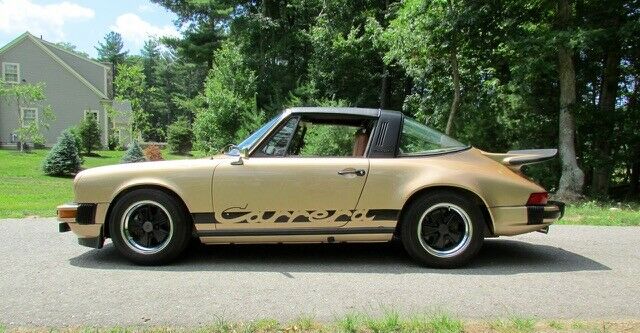 All original pristine condition California Car. 1975 Porsche 911 Carrera Targa fully documented with a Porsche certificate of authenticity. (See Pics) Car is featured with a 6-cyl. port injected naturally aspirated 3.0L 2687cc/165hp motor with a 5 speed manual transmission and Bosch fuel injection. Finished in Gazelle Metallic (color code Z7) with a beautiful rare Cinnamon Partial leather (color code 36) interior in outstanding condition. 26,468 original miles! Floors, front suspension pan, rockers and torsion bar areas are rust free and in excellent original condition. The car has always been garaged in indoor climate-controlled storage. This car rides on a set of staggered Fuchs with black center and Porsche crest.