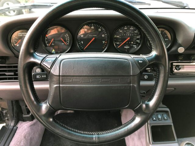 This well maintained 964 is in great mechanical and esthetic condition. I've ownedher since 2007 and amonly selling for another investment opportunity. Everything works as it should and she drives strong and solid. Last major work was performed in 2015 which included valve gaskets & adjustment, belts, plugs, brakes and misc. seals. There are almost no oil leaks, which is uncommon for these air cooled engines. She was professionally repainted in 2011 and only driven a few thousand miles a year since then. The speedometer was replaced by Porsche at 75K mi in August of 2000. I also have a bunch of spare & original parts that I have accumulated over the years that come with the car. There have been a couple of owners in the late 90's, but the primary owner (other than me) was a local engineer who used it as a commuter vehicle. I have a lotof the receipts dating back to 1991. Some of the modifications are KW suspension, cross drilled OEM brake rotors, 92 style mirrors, simple, but incredible sound system using factory locations for components, keyless entry integrated with the factory alarm, euro front reflectors, muffler bypass in the rear bumper, lightweight cup flywheel witch new clutch, Steve Wong performance chipand replaced the rear spoiler switch with a 993 version to make room for a storage cubby in the center console.
