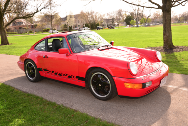 I have personally owned this car for 7 years. Selling because of recent purchase of 993. These pictures were taken last fall and I no longer have the carrera script on the car. I have a small collection of Porsches and don't have time to enjoy this anymore like I should. I have full book of records and am a member of the Porsche Club. The car has never been tracked or smoked in. The car has original dial 90's on the car and brand new continental tires. In pictures are my 965 Turbo wheels. You will not be disappointed with the condition of car. It was placed on display as representing all 964's at Byers Porsche during our 70th anniversary Porsche celebration. Happy for a pre purchase inspection or a test drive if you live in Columbus, Ohio.