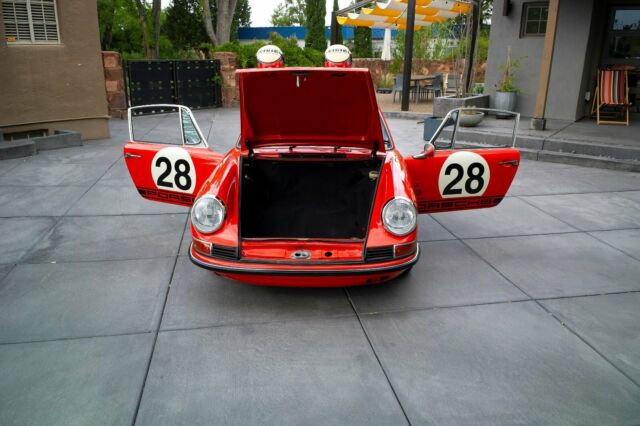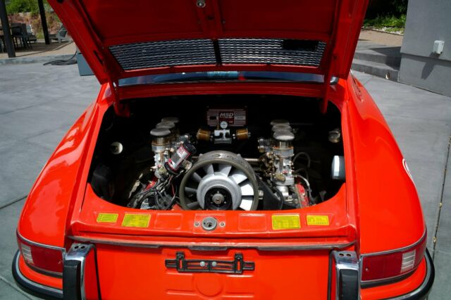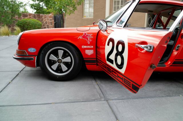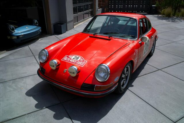 This1968 Porsche 912 coupe was built into a Monte Carlo tribute car by R Gruppe member Troy San Jose. It now runs a 2.7L motor out of a CIS-equipped 1975 911 and features a number of upgrades thatmake this 912/6well-suitedfor vintage rallies, street, or track use, including triple throat 40IDA 3C carburetors and S camshafts. A set of Deep Six Maxi Light Fuchs areincluded, along with a set of 5 factory steel wheels with tires.With approximately 4000 miles added since the build was completed, this Porsche has been sorted and is ready to be enjoyed. It is sold with a clean New Mexico title. Vic Elford won the 1968 Monte in a 911 and this car was styledto resemble the1960s factory Monte Carlo racers with bright Tangerinepaint, rally lights, sponsor decals, and center-exit exhaust. All decals are high quality vinyl and easily removed. The car sits nicely on Bilstein Sport shocks that were recently installed at all four corners. In addition to the aforementioned Bilstein Sports, the suspension has been modified with rear over-sized torsion bars and adjustable spring plates. The brakes also received new pads and rotors, in addition to rebuilt calipers. A new master cylinder was installed earlier this year. Therally theme is carried through to the interior with a Momo Prototipo steering wheel, Rennline kick/toe panels, RS-spec lightweight carpeting, RS lightweight door panels, 917 style wood gear-knob on theupgraded short shifter, and a color matching roll bar.The seats have been redone and remain in great shape. The motor is a 2.7L CIS donated from a 1975 911. Extensive work performed duringinstallation includes: