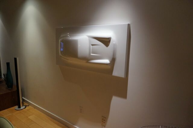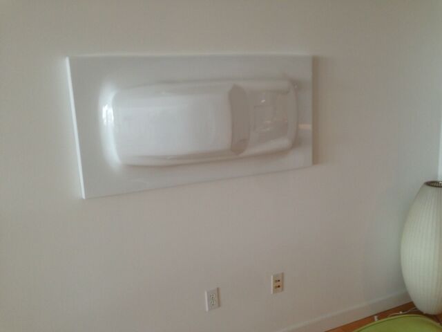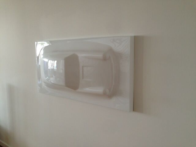 | This a wall hanging Porsche sculptor made from hand laid 100% Carbon fiber. it measures 48" x 24" x 10" then painted in Automotive paint then Color sanded and buffed just like your real car.This one of ten that I have made one is on exhibition at the Peterson museum in LA.I am a profesional Automotive Clay sculptor of 35 years and a Porsche freak. I found there was very little 3D sculptors available and just had some fun. Mold and right to produce are an available option |