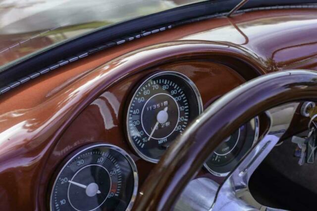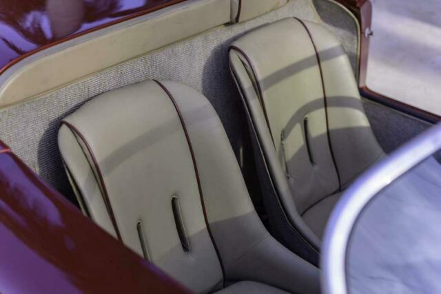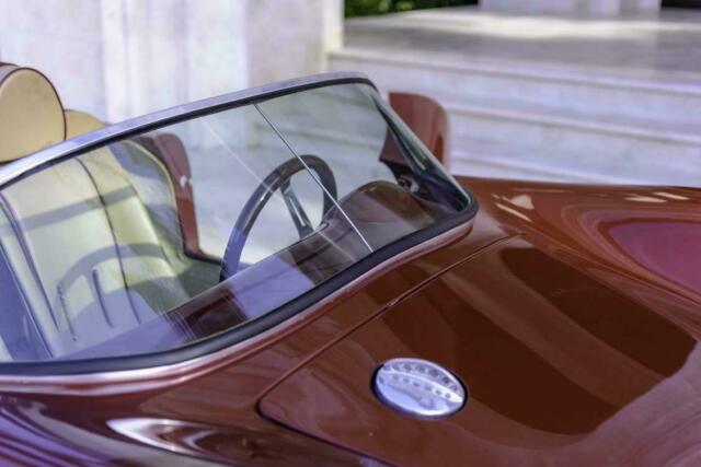 Brown with Beige/ Brown piping leather trim, Oatmeal German square weave carpet, Nardi Wood steering wheel. Chrome Rear Grilles, Chrome Wheels, Chrome Gas Cap and Chrome lined windshield. Body by Thunder Ranch. Manual Transmission One Owner |