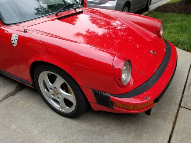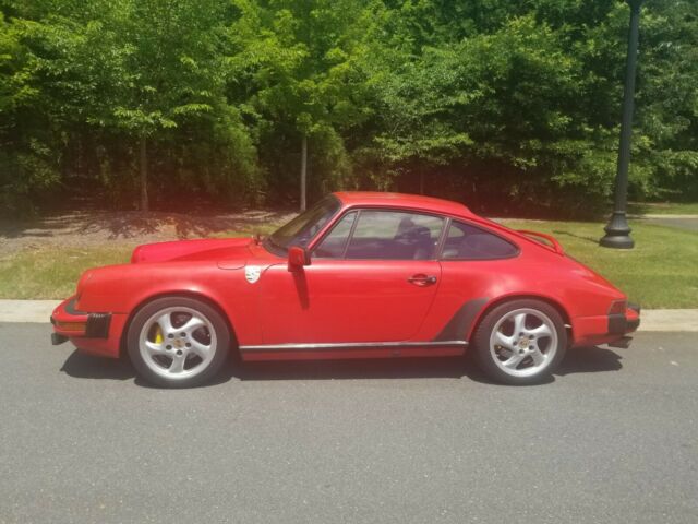 This 1983 Porsche 911 SC was purchased new by its current owner at Huntington Auto in New York and is finished in Guards Red over a black interior. Power comes from a 3.0-liter flat-six paired with a five-speed manual trans axle, and modifications include a basket handle spoiler, 17″ Turbo Twist wheels, yellow brake calipers, adual exhaust system,custom upholstery, aluminum pedals, a Momo steering wheel, a CD changer, and more. An oil change was reportedly performed in February 2019. This 911 is now offered by the family of its current owner with service records, factory literature, a clean Carfax report, and a clean North Carolina title.The car is finished in Guards Red with black trim and rear fender guards, and hasreportedly been garaged throughout its life. The hood and bumper have been repainted to correct chips according to the seller. Modifications include Porsche fender crests and a 993 basket-handle spoiler. A crack is noted in the lower left corner of the windshield.Later-model 17″ Turbo Twist wheels wear staggered-width Continental Extreme Contact tiresfrom 2011 up front and2016 out back. Braking is from yellow four-piston calipers with cross-drilled rotors at all four corners.The interior is trimmed in custom black upholsterywith red piping and features a matching dash cover, carpets, and branded floor mats. Amenities include a power-operated sunroof, air conditioning, and aJVC cassette stereo with a trunk-mounted CD changeA Momo steering wheel has been added along with a custom shift knob, aluminum pedal covers and gauge trim, and a fire extinguisher. Approximately 130k miles are shown on the nonfunctional six-digit odometer, with all mileage added by the current owner. Total mileage is unknown.The air-cooled 3.0-liter flat-six was factory rated at 172 horsepower with 189 lb-ft of torque and is linked to a five-speed manual trans axle. An oil change was performed in February 2019 according to the seller.An aftermarketdual exhaust system replaces the factory setup. Additional underside photos are view able in the gallery below.Factory literature and a stereo manual are included in the sale, as are service records according to the seller.The May 2019 Carfax report shows history in New York, Florida, and North Carolina and lists no accidents or other damage from 1987 to July 2018.