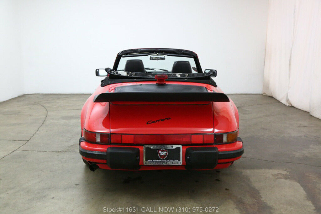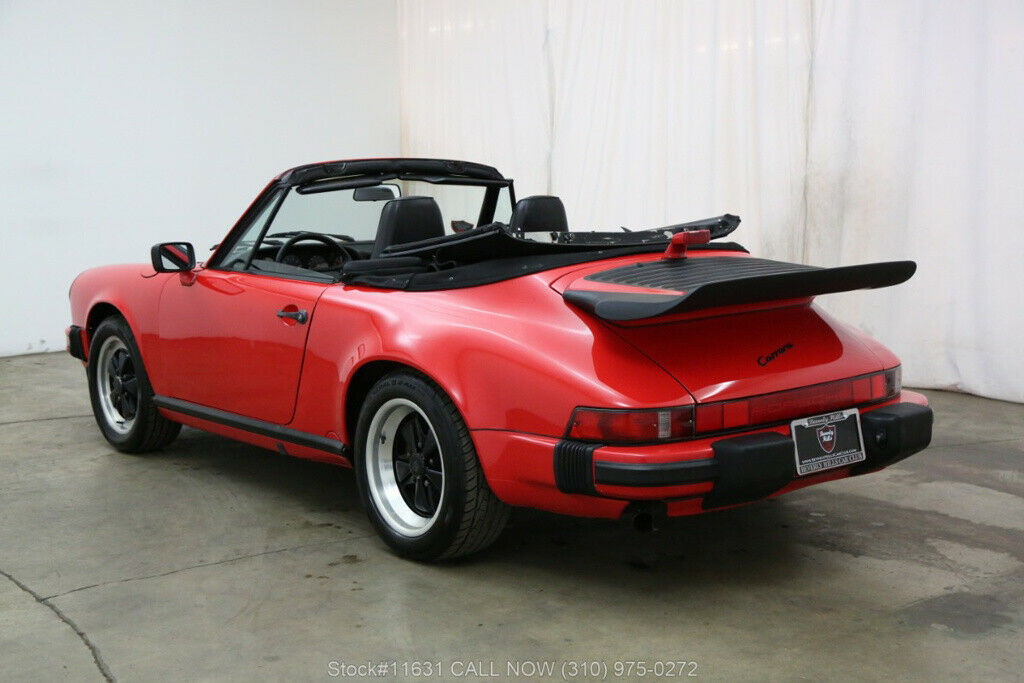 | 1989 Porsche Carrera Cabriolet This 1989 Porsche Carrera Cabriolet with matching numbers is available in its original color code 80K of guards red with a black interior. It comes with a clean Carfax and is equipped with a 5-speed manual transmission, air conditioning, cruise control, power windows, power soft top, Fuchs wheels and includes the spare tire and jack. This car is mechanically sound. For $33,500 |