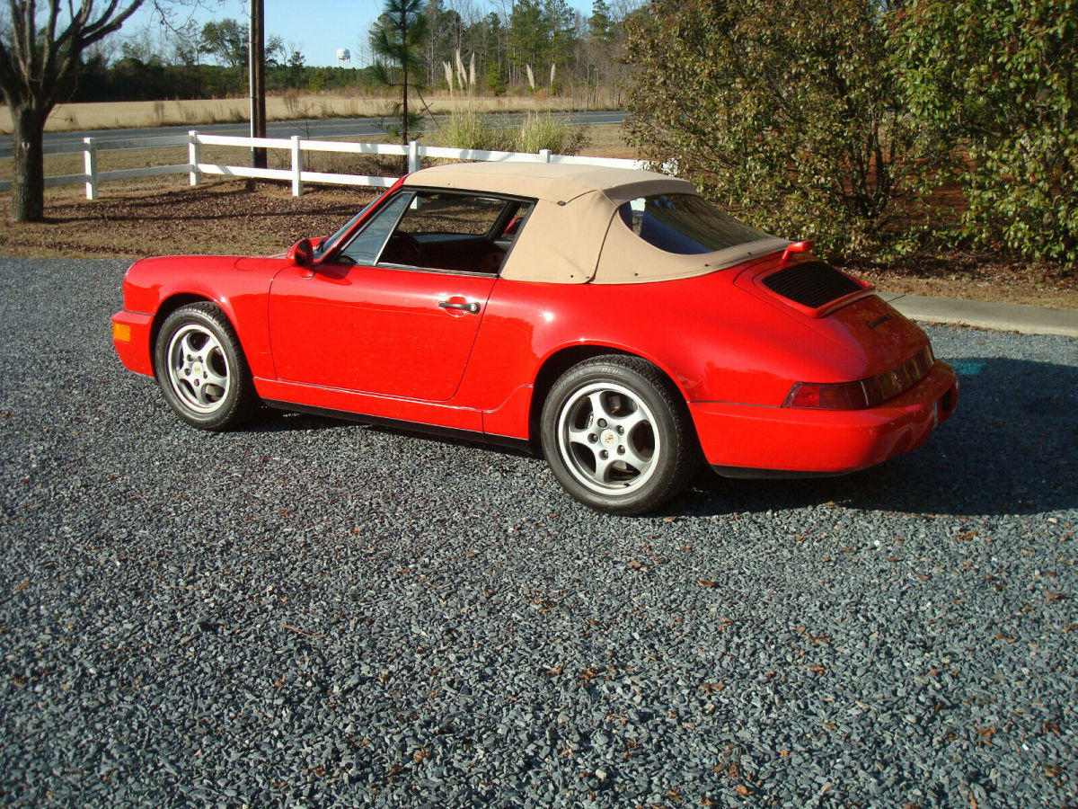 Nice Southern 964 C 2 Cabriolet purchased 17 years ago from Weldon Scroggins well known Porsche automobile seller in Va. makes me the second owner of the car. New top installed 5 years ago still looks new . Car has been garaged kept since ownership. 4 years ago car was parked inside garage and not driven. Last Fall decided to start driving again . Fuel system has been gone through / fuel pum, filters fuel tank out and cleane, new fuel neck & ca, oil & filter chang, new battery . Car drives great and top works as it should.