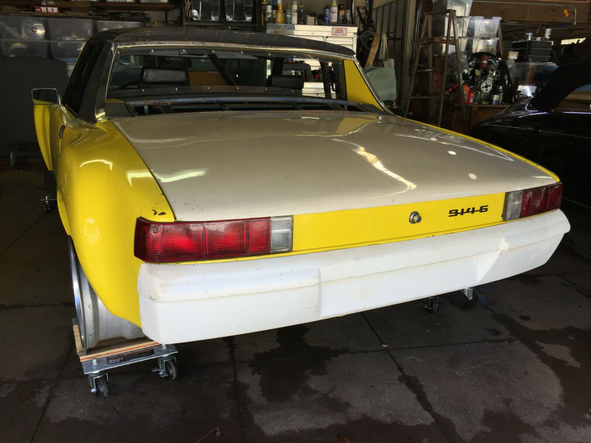 Helping a friend sell his 914-6 lightweight project. Original vin & color (canary yellow) verified by thePorsche factory. This factory six is offered forsale, as is. Clear Title and Registration. Tub is in excellent condition. Original Engine is missing. Late style 914 side shift transmission andlinkage. Original 914/6 Oil System, Engine Mount, and complete Electrical System Harness / Gauges. Original steel Front/RearTrunk lids as well as lightweight Fiberglass Front and Rear Lids. Professionally installed 914/6GT Fiberglass Flares. Factory Steel door shells (empty). Front 911S Brake Calipers / Vented Rotors with factory factory 914/6 Rear Brake Calipers / Vented Rotors. Professionally installed “Boxed†rear Trailingsuspension with Factory rear body stiffening plates. Koni Coil Over Shocks. F/R Extended wheel studs. 4-7" Cookie Cutter alloys with Goodyear Gumballs. Complete Roll Cage with removable diagonalbrace. Car is located in Honolulu 2.5 miles from shipping port. Optional @ Additional Cost: open tandem trailer; AlReed fresh restored 89 911 Speedster Fuchs 7x16 & 9x16 in the traditional 911 RSR finish; 70 911S magnesium engine block restored in chromate finish by Gary Arentz