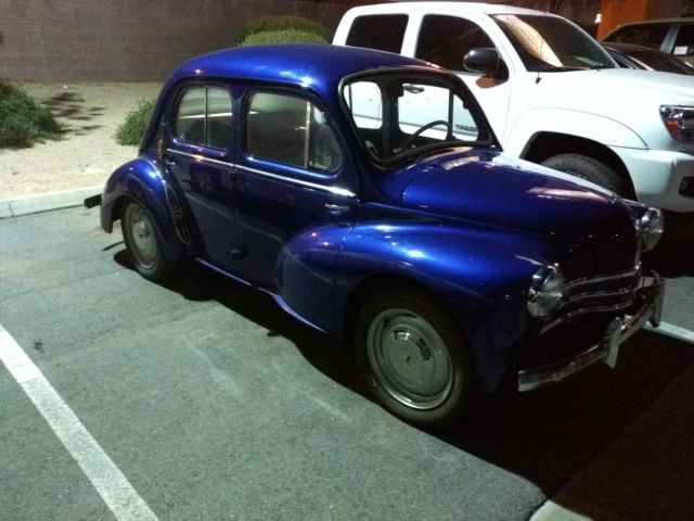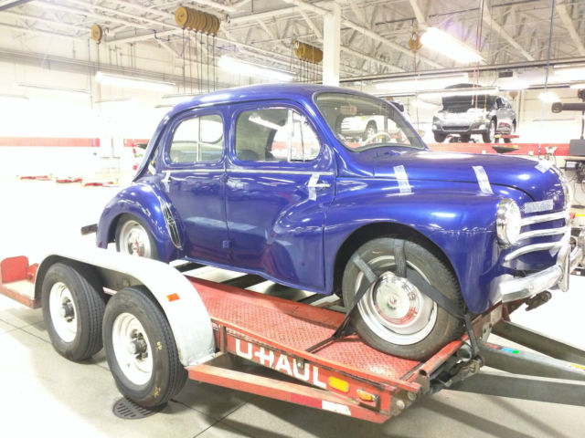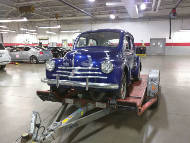 A mostly restored 1958 Renault 4cv. All original wheels including a spare. Manual transmission (3 on the tree). Recently repainted, nd seats are re-upholstered.Under-carriage is as clean as the body. No rust on floor boards or body. No rust on frame. Rear bumper is showing very minor signs of rust.Missing small trim pieces like rear hatch latch. Front latch may need an adjustment. Motor is blown but is original. Everything under the hood is mostly new or refurbished. Will need a new motor to drive. **Please forgive the tape on the body. It was just leaving my mechanics shop in the pictures and I did not want anything popping open during transport.** The vehicle was a barn find in the early 90's that was mostly intact with rust and not running. In the last 20 years close to $15,000 in documented maintenance and restoration has been performed. I will have supporting documents available for you at time of pick up. Vehicle was very well maintained over the last 10 years and was slowly being restored when the motor blew in the last twelve months. Top end (head) Is still in very good shape. Block itself has a baseball size hole in it. This was the original motor. Instead of sourcing a new motor and selling for over $10k I decided I don't know enough about the French 4cv. I do know the Renault 4cv will also take the motor from a first generation Dauphine without having to change the transmission. Currently titled in Nevada Vehicle is located in Las Vegas, V (Henderson). Buyer must arrange shipping and local pick up Please contact me for more questions. Oval plate #:R1062814262 Diamond Plate #:R10623532218 Motor Plate #:type: 662-2900125 More history about the 4cv: "TheRenault 4CV(French:"quatre chevaux"[kat ʃəvo]) is arear-engined,rear-wheel-drive, -dooreconomysubcompact carmanufactured and marketed by theFrenchmanufacturerRenaultfrom August 1947 through July 1961.[1]As the first French car to sell over a million units, he 4CV was superseded by theDauphine. The 4CV was ofmonocoqueconstruction,[1]3.6m (11ft 10in) in length with frontsuicide doors[4]and using Renault'sVentouxengine in arear-engine, ear-wheel drive layout. CV is the abbreviation ofcheval-vapeur, heFrenchequivalent to "horsepower" as a unit of power. The name 4CV refers to the car'stax horsepower." |