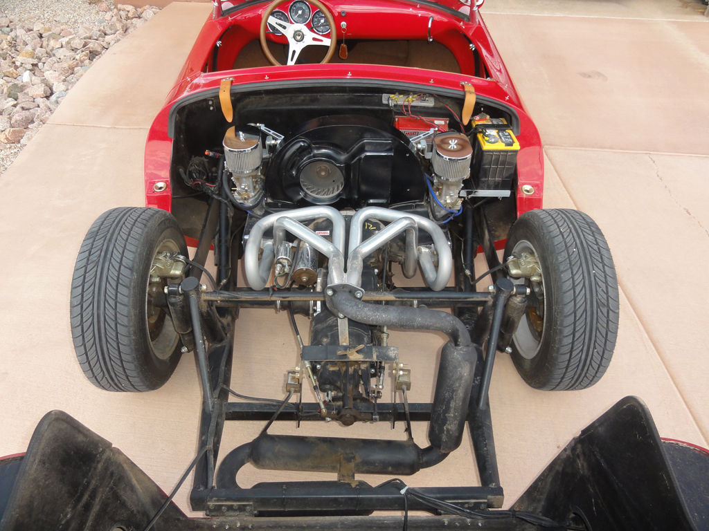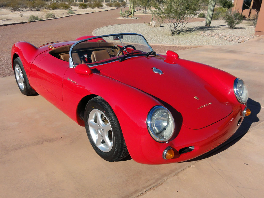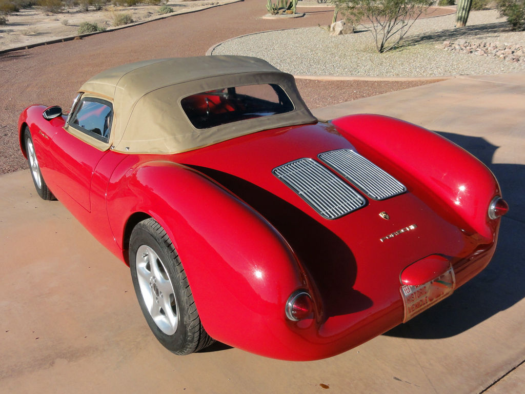 Beck replica of 1955 Porsche 550 Spyder. built in 2007. Indicated reading on the odometer is actually kilometers and not miles. Less than 2300 km/1430 miles. This vehicle has been seldom driven over the past 7+ years; and always garaged when not being driven on a trip. Original owner. Purchased in 2007 from Special Edition. who uses the original Beck design which is the best replica made of this classic car and matches the original DOM tube side frame and chassis design. Beautifully made car. This is not a cheaper copy using a cage frame or VW pan conversion. Fun car to drive and a real eye catcher. Pictures of the ID plates (one on door jamb and one under the hood). This is unit #978. The letters stamped on the under hood plate are the assemblers. The "CH" is for Carey Hines. currently VP at Special Edition. For history buffs and purists. Chuck Beck is the original developer of these most wanted replicas of the 550 Spyder. Some call it the "golden standard" for this car replica as it most closely matches the original Porsche design built in the early 1950s for motorsport competition. The 1950s originals were all aluminum bodies; and these replicas are fiberglass. Beck started making them in California in the early 1980s. In the 1990s the California tooling was sold to Thunder Ranch; and Chuck Beck and Kevin Hines (Carey Hines' father) became partners and built a new factory in Brazil. Chamonix Karosserie. to build the body and chassis. Final assembly of the cars is done by Special Edition in Indiana. Hence you will see the Chamonix logo on all current versions of a true "Beck". You may find companies which build versions that look like a Beck. but they are only licensed to do so. Custom built 1985cc VW-based Type-1 engine with 90mm bore x 78mm stroke. All new components. not just simply a rebuilt engine. Dual Weber 44 IDF carbs with electric fuel pump. MSD 6A ignition and 12V alternator. High Flow 044 Heads with Engle W110 camshaft and lightened flywheel. Custom 4-into-1 exhaust with triple resonators for better exhaust flow and lower sound level than the typical 4-into-2-into-1 setup. Design power output approximately 130 hp. This car was built to install EFI. so there is a fuel tank return line to the engine bay and a bung on the exhaust header for an O2 sensor. For a few years. I actually ran with EFI; but found that it was more trouble to keep tuned than a good pair of Webers. Engine is very dry with no significant oil leaks. Completely remanufactured 4-speed transaxle by Wright Gearbox with 4. 12 final drive. Unique Indio Red (also known as Bahia Red) exterior color with Whiskey Tan interior. Gold colored Porsche badges. Racing mirrors on both sides. Disk brakes on all four wheels. The front and rear rotors are drilled for a 4x100 bolt circle with standard 12mm studs. The rotors are not made to take advantage of hub-centric wheels. Borbet alloy wheels are 14x6 with a 38 offset and use conical seat lug nuts. Falken Ziex 195/60R14 tires. Ground clearance is about 2-inches with the driver. For street use or bumpy roads the suspension can be adjusted for higher clearance. I had to jack up the car just to get a camera underneath! Prepared to compete in SCCA Solo autocross competition classes under either DM or EM (with added ballast). Master power switch behind passenger seat. Also included is a removable 3-point roll bar built to SCCA autocross specifications with a custom tan tonneau cover that fits around the bars. Roll bar mounts onto two stubs welded to the 3-inch DOM frame behind the seats with a cross brace to a threaded floor plate in front of the passenger seat. A passenger can still slide their way into the passenger seat with the roll bar in place; but it is not comfortable. Mounting bolts included. Complete with removable tan canvas top and side screens. Top is like new and has never been used on a road trip. Front trunk designed to hold the top. side curtains and tonneau cover inside the lower nose section. The first picture shows the "fluted" glass Porsche style headlight covers currently on the car. Other pictures taken at various times over the past 9 months. Under body has various places where the paint has been knocked off the black colored fiberglass. but there are no holes. deep cuts or cracks. There is a build up of dirt in the adhesive seam between the upper unibody and the belly plate. but no rust is possible. Approximately 2300 km of total use. Professional appraisal done in 2009 resulted in a $36. 50 value. Current list price for a new turn-key version like this one from Special Edition is over $38000. Vehicle has always been stored inside a garage when not driven. The cockpit is quite snug. and some people might not actually fit comfortably into this small car. So. I added photos of the basic dimensions for the driver's seat. pedals. steering wheel and top of windshield (all measurements in inches with seat at its farthest back position). Seat can be moved with a release lever up to 2-inches forward. The back of the seat to the pedals dimension is for the clutch from further released to fully depressed. I have had several people drive this car OK over the years; and have yet to encounter somebody too tall or too wide to fit. I am 5-8. 200 lbs with 38 waist and fit fine with the seat fully forward. Just wanted to alert anybody over 6-feet tall. over 200 lbs. and waist over 40-inches to check the measurements against your current car. Bidder is responsible for making sure they can fit into the seat and operate the controls properly. If you have other questions about the builder or the pricing for a new model. google "beckspeedster" to find Special Edition's website. You can find more pictures and details by asking for a direct link to a web page. -----------------------------------------------------------------------------------------Vehicle is titled in Arizona as a 1955 Porsche Special Construction. Title allows the car to be exempt from emissions inspection an