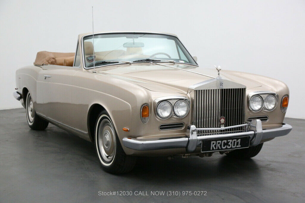1969 Rolls-Royce Silver ShadowCoachwork By H.J Mulliner, Park Ward Limited DropheadThe 1969 Rolls-Royce Silver Shadow Coachwork By H.J Mulliner, Park Ward Limited Drophead featured here with 55,774 miles on the odometer is available in champagne with a tan interior. It comes equipped with an automatic transmission, air conditioning, power windows, power steering, power seats, power soft top, boot, rear luggage rack, and solid wheels with white line tires. An excellent vehicle that was previously owned by a Rolls-Royce Owners' Club (RROC) owner and is mechanically sound. For $44,500