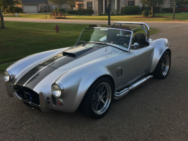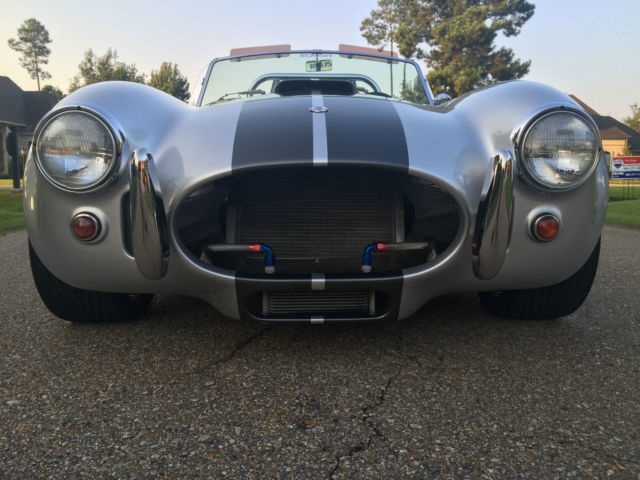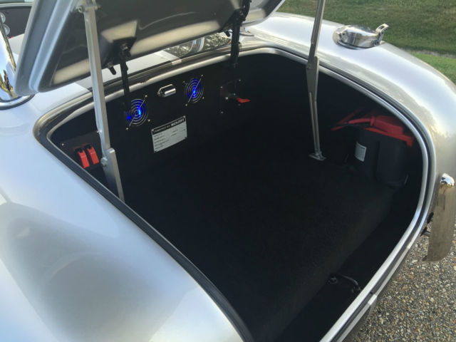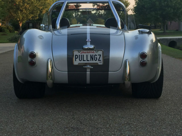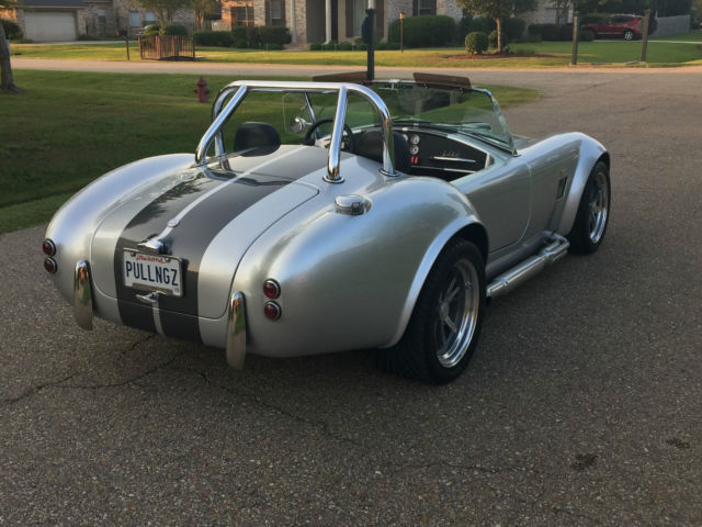 This beautiful Cobra Replica was professionally built from 100% ALL NEW components and is a Lone star Classics. Lone star has added an additional four inches in the cockpit area which makes for one of the most comfortable Cobra replicas on the road today. Only 5700 miles with no known problems or defects. Under The Hood; Roush 342 crate motor with 462 HP and 430 FT/LB torque(complete engine built by Roush Racing) Edlebrock aluminum intake manifold Holley 750 four barrel carburetor MSD 6 Plus programmable electronic ignition Edlebrock electric fuel pump Polished one wire alternator Afco oversized aluminum radiator Electric cooling fan w/ Dakota Electronics programmable controller Separate oil cooler with thermostat control Optima Red Top battery w/ battery maintainer charger Engine compartment sprayed w/ Lizard Skin Heat/Sound/Vibration coating Custom Dupont paint with 3 coats of clear Drive Train; Tremec T56 six speed manual transmission Short throw shifter Currie 9+ rear end w/ 383 gears American Racing Shelby replica knock off rims Goodyear Eagle tires 17/245 front 17/315 rear QA1 adjustable coil overs on all four wheels Wilwood 13" vented rotors w/four piston calipers on all wheels Rack and pinion steering Rear anti sway bar Interior; Custom Leather bucket seats w/ headrests Full chrome plated roll bar Full set of Autometer II Gauges including digital tach/shift light and Performance computer Keyless FOB push button start w/ lighted start button Polk headless audio system w/ bluetooth streaming 4 point racing harness both seats Chrome plated fire extinguisher Custom floor mats Fully carpeted with sound proofing Fully finished carpeted trunk Tilt steering wheel Dash signed by Jack Roush Comes with car cover |