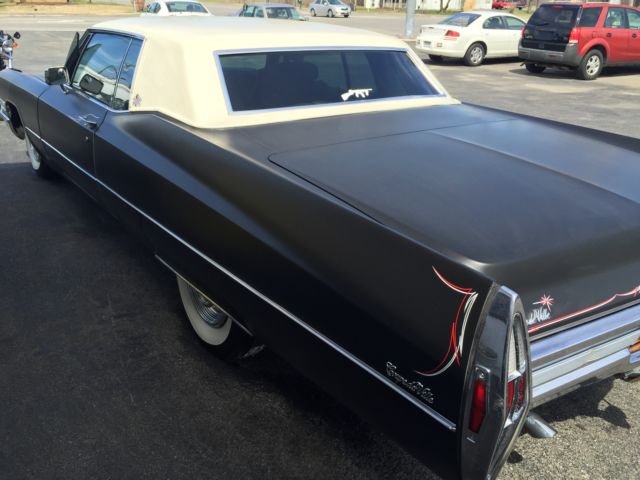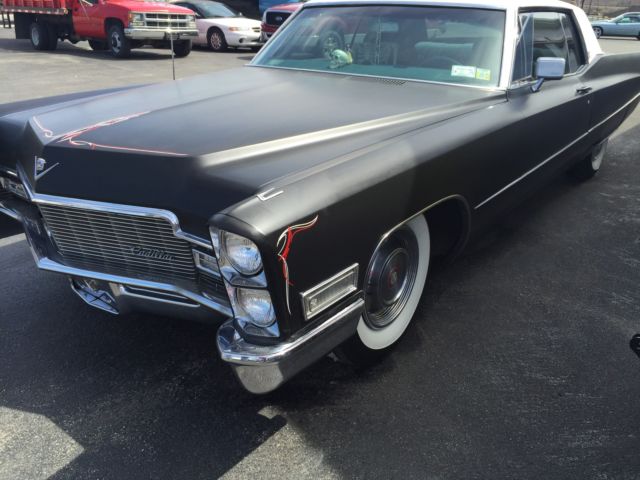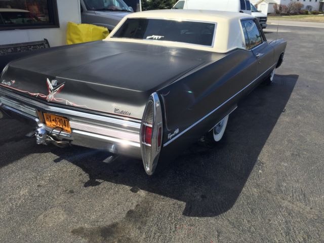 I have a 1968 Cadillac 2 door coupe deville in excellent condition. It is as straight and body filler free as they come. Painted a beautiful satin black with painted pearl top. It is beautiful in and out. Motor is a 472 bigblock. Automatic 400 transmission. Flame thrower exhaust. Interior is beautiful and all the options work. Power windows, ocks, orking ac, nd more. Needs nothing and is mechanically perfect and up to NYS inspection standards. The Cadillac has 48,000 original miles and counting. Never seen rain. Please call or email with questions. I have the right to end the auction early due to being for sale locally.Please note this is not "Shelby " I couldn't get that off the ad