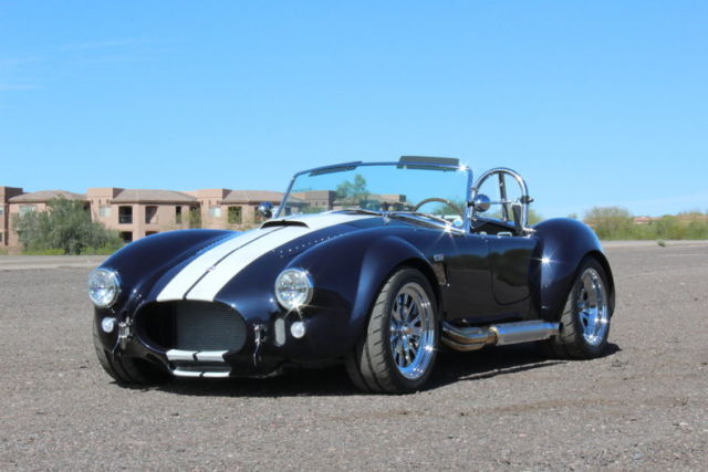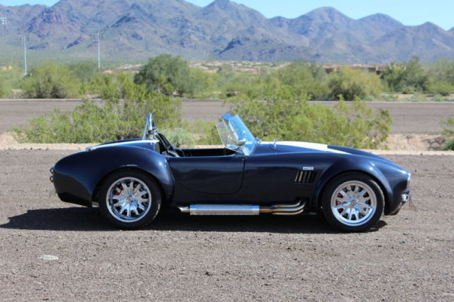 1965 Backdraft Cobra This beautiful Deep Sea Blue with Pearl White striped Backdraft Cobra is just what you need to kick off your summer!! Built in 2008 but titled as a 1965 Cobra and has an extremely well maintained 5010 miles. This Cobra is powered by a Roush 402SR motor pushing out over 500 horsepower and 470 lb/ft of torque. Backed by a TKO-500 5 speed transmission. I mentioned the paint once already but the pictures can't do it justice. You've got to see this car in the sun!! It is a gorgeous color combo. This Backdraft was also built with the larger 17" wheels that have been triple Chrome plated. And you'll have to run the larger wheels because there are some very large Wilwood disc brakes behind them. Plenty of stopping capability for all that horsepower. Traditional black leather buckets with black carpet. The Cobra also comes with a car cover, wo extra steering wheels and a box full of extra little parts. This car is ready to hop in and drive!! Dealer's Information - 9024 E. Bahia Drive,